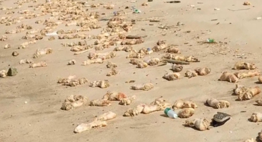 중국의 광둥성 해안에서 이유를 알 수 없는 엄청난 양의 돼지 족발이 해변가 백사장을 온통 뒤덮는 사건이 발생했다고 관련 매체는 전했다.
