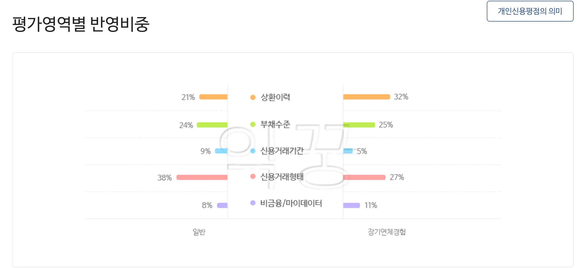 위의 두 신용평가사에서 개인의 신용평가를 할 때는 아래의 다섯 가지를 기준으로 엄격하게 평가한다.
