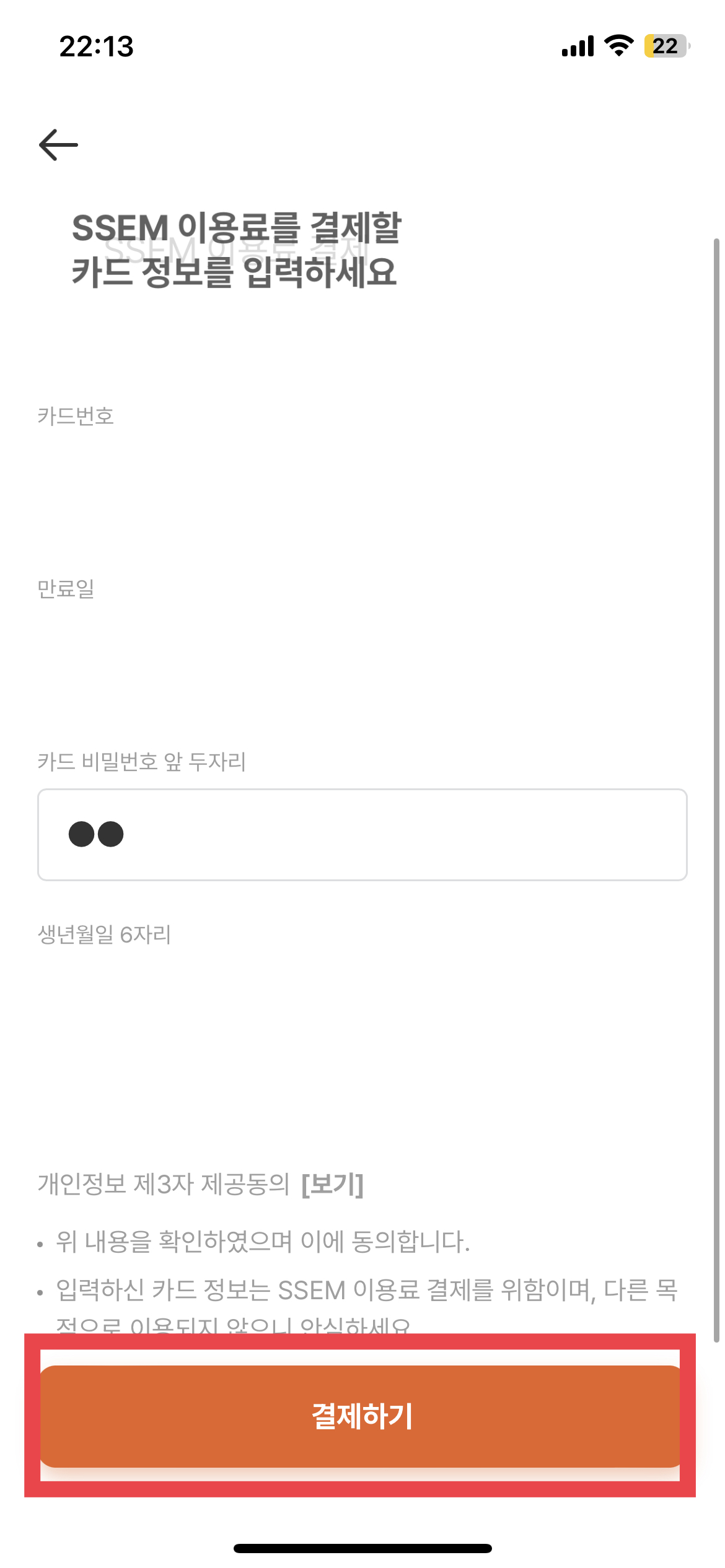 결제 방법은 두 가지가 있는데 본인이 편한 방법으로 하면 되고, 내 경우는 카드번호를 직접 입력해서 결제하는 방법을 선택했다.