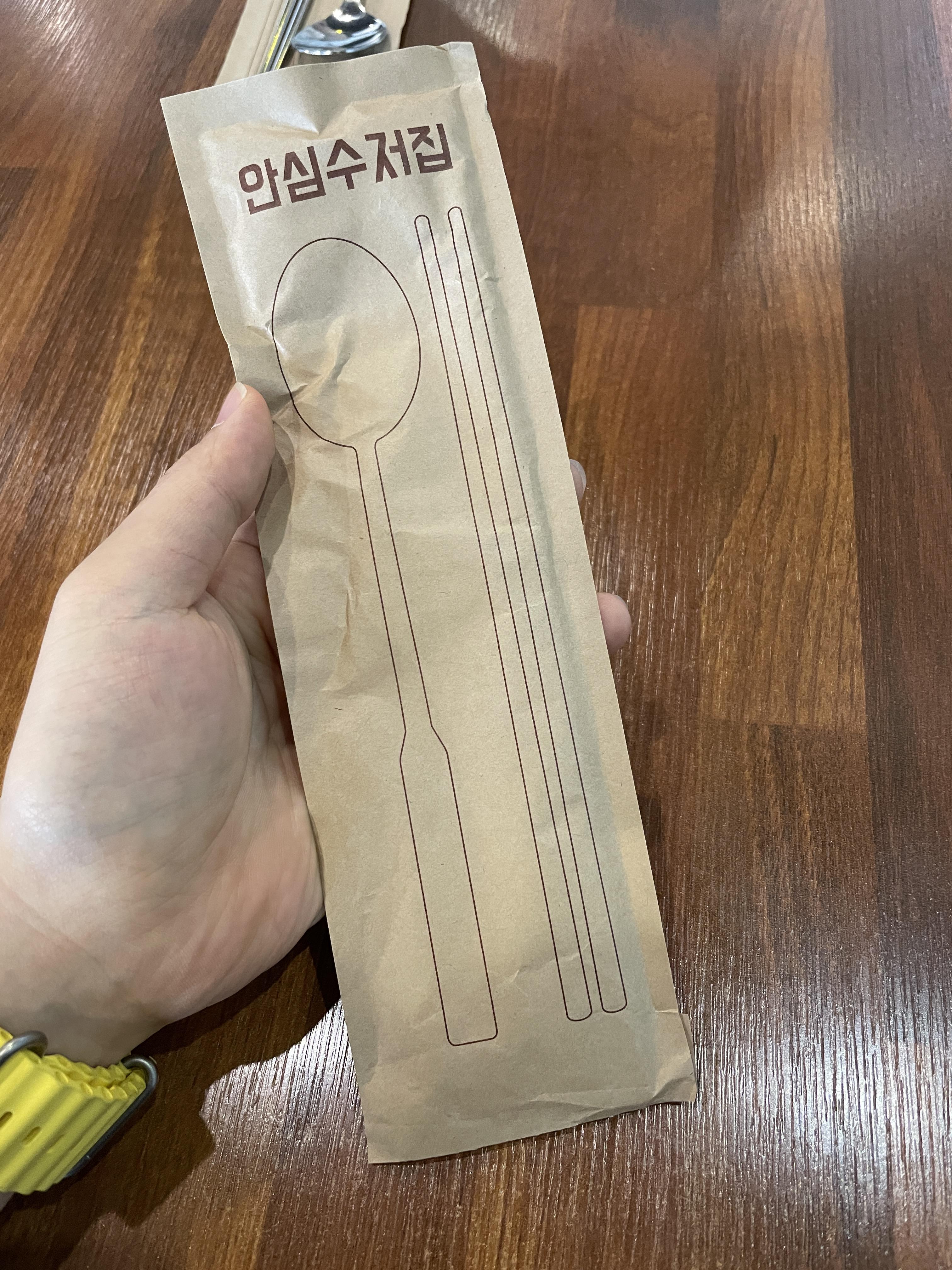 그리고 두 번째로 좋았던 점은 수저를 '안심수저집'에 넣어서 보관한다는 점이었다. 사실 먼저 온 사람의 '손 위생상태'를 전혀 모른 상태에서 수저를 만져서 꺼내다 보면 나도 모르게 위생 걱정을 하게 되는 경우가 종종 있다.