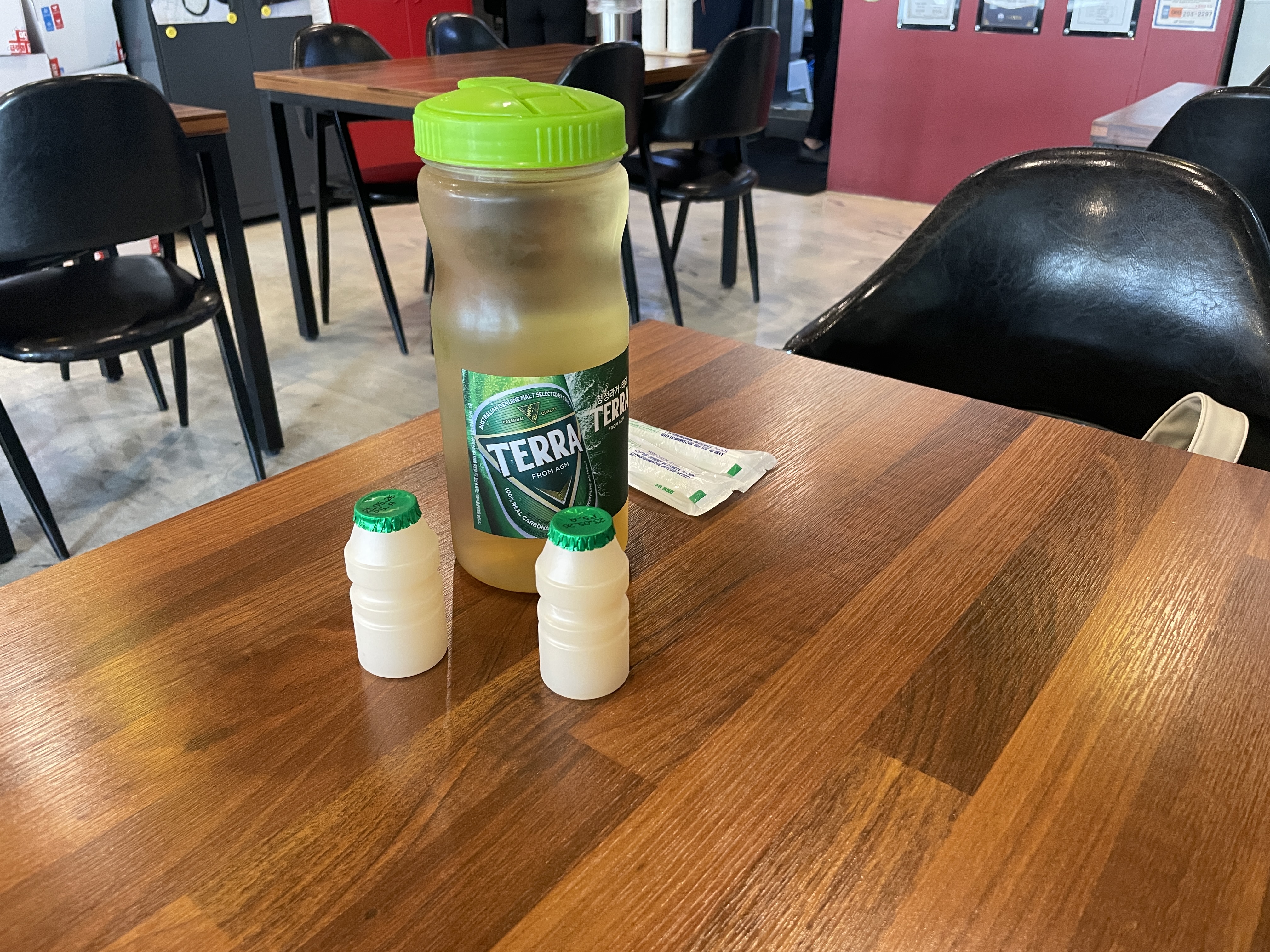 꼬막식당에 방문해서 자리에 앉으면 가장 먼저 헛개차와 요구르트를 주신다. 우리는 여기서 이미 '합격'을 외치고 있었는데 일반적인 정수기 물보다 헛개차를 주면 뭔지 모르게 우리는 그 식당을 좋아하게 되었다. 뭔가 사소한 정성을 쏟는 느낌이 든달까? 이건 우리만의 개인적인 생각이다.