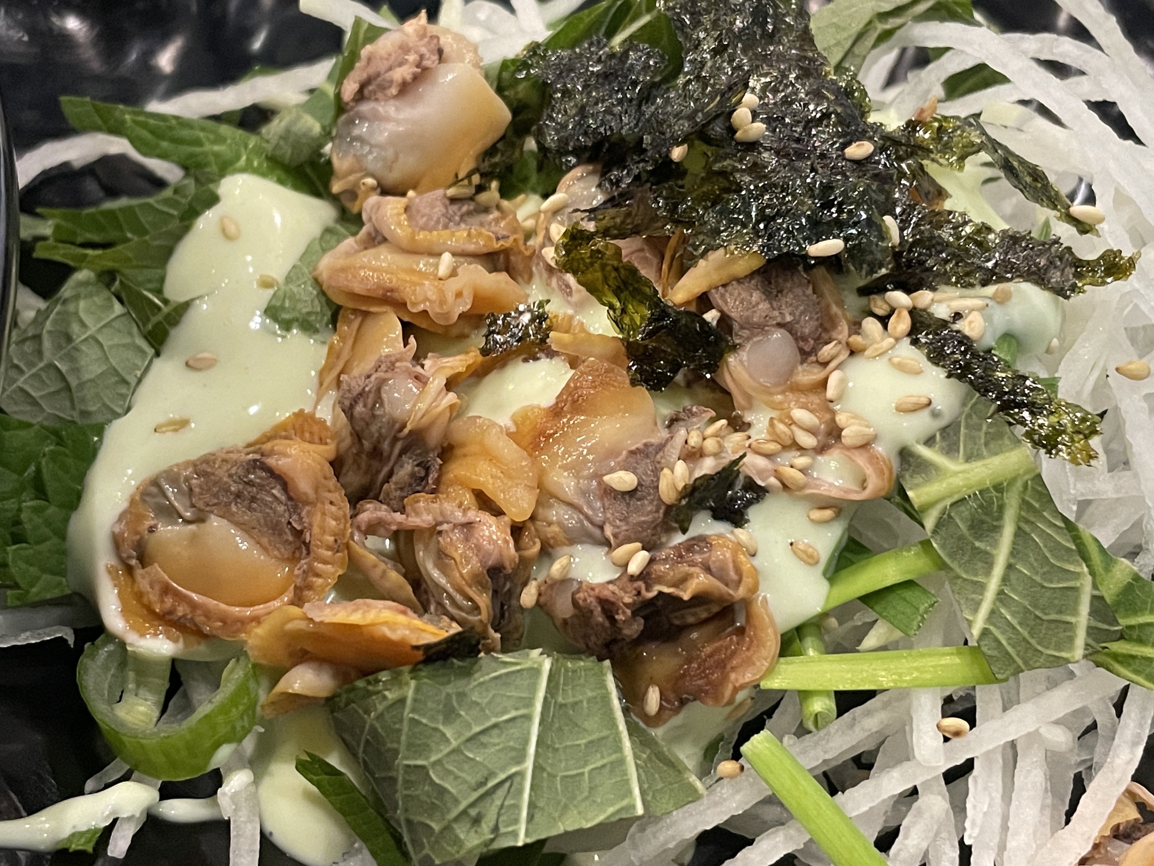 간장꼬막무침은 우리가 예상하는 맛이었으나 짜지 않고 적절한 간에 꼬막의 풍미를 제대로 느낄 수 있었으며, 꼬막샐러드는 고추냉이 드레싱과 채 썬 무 그리고 꼬막의 삼박자가 오묘하게 어우러져서 독특하면서도 특유의 맛을 느낄 수 있었다.