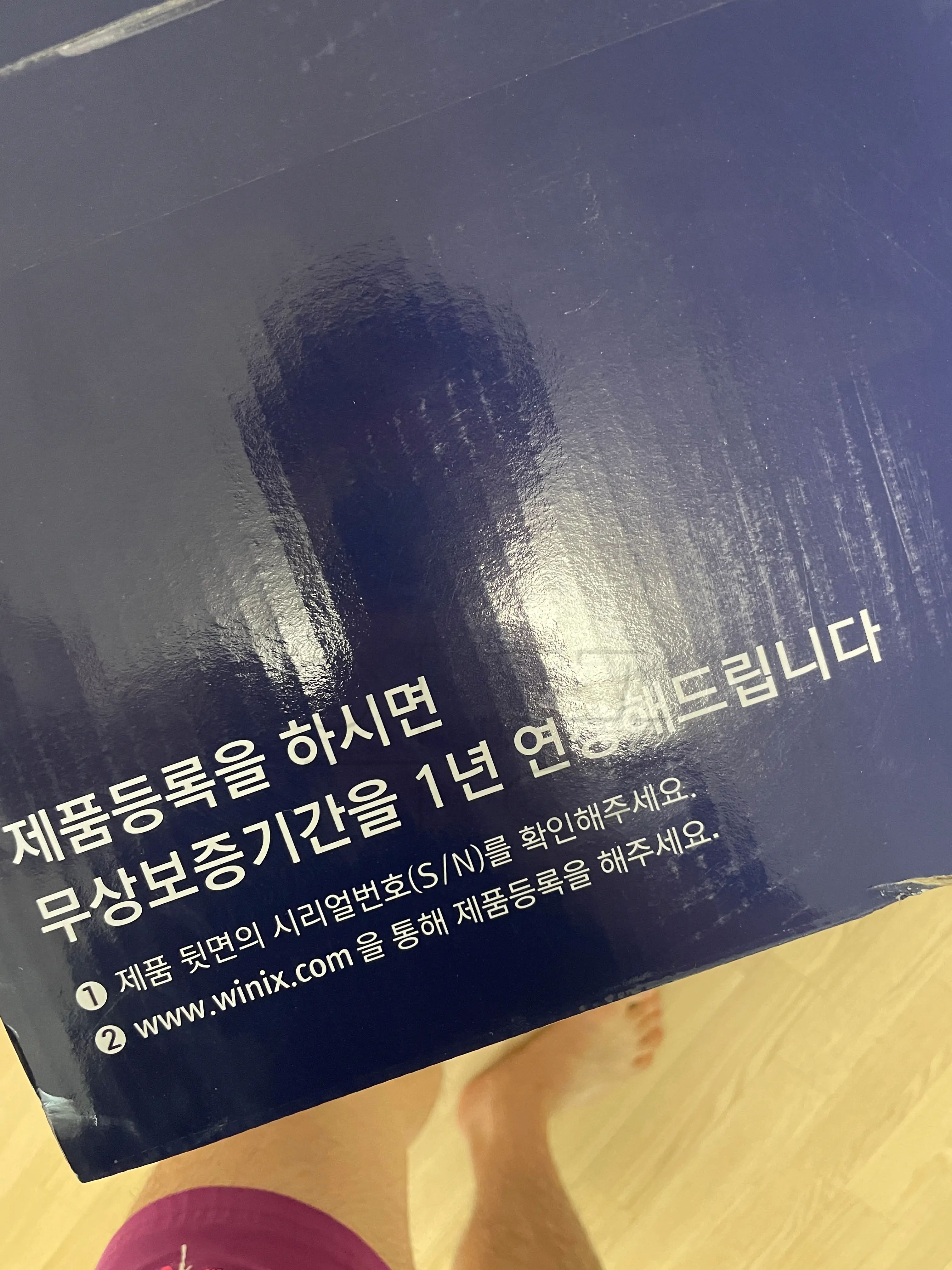 다른 면에는 제품등록을 하면 무상보증기간을 1년 더 연장해서 최대 2년으로 늘려준다는 안내문과 함께 위닉스 타워프라임 공기청정기의 특징이 잘 설명되어 있었다.