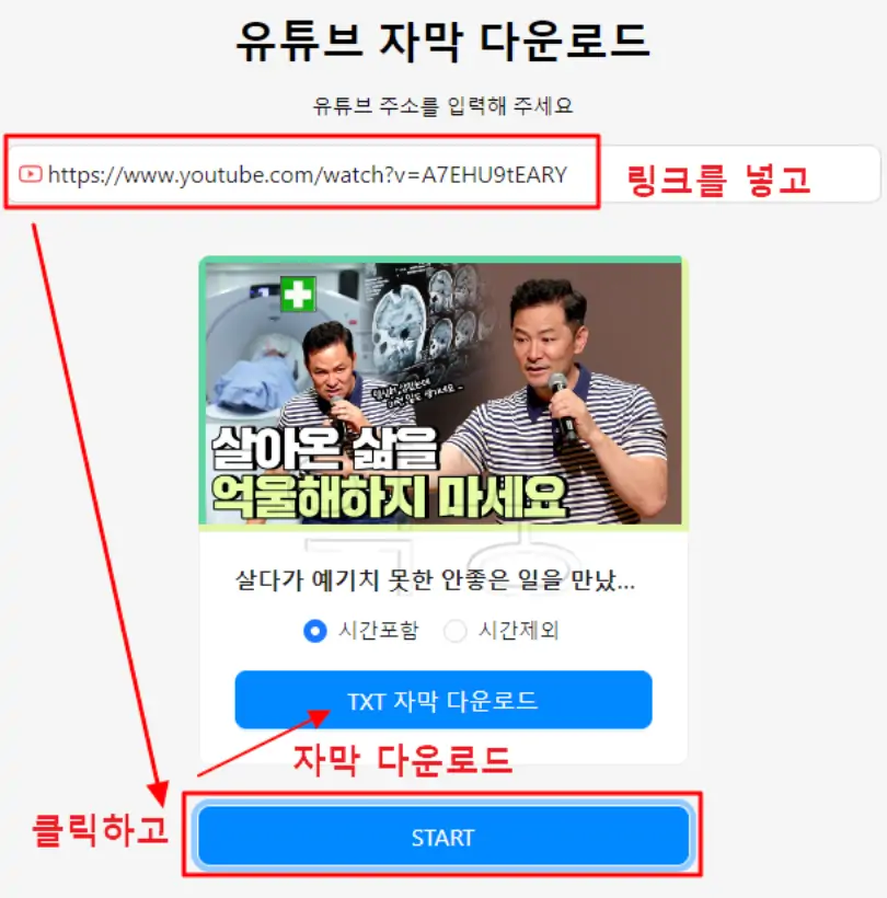 유튜브 자막 다운로드 사이트는 내가 스크립트를 추출하고 싶은 영상의 URL주소를 입력하면 바로 자막을 추출한 뒤에 메모장 파일 확장자인 txt로 다운로드할 수 있도록 해준다. 게다가 직접 다운로드를 하면 몇 분쯤 해당 자막이 송출되는지 시간과 함께 추출이 가능하기 때문에 내가 제대로 알아듣지 못한 외국어도 쉽게 캐치하고 알아듣는 것이 가능하다. 또한 사이트 내에 아무런 사진이나 영상 그리고 광고가 없고 링크를 넣는 곳만 하나 있으며, 유튜브 영상링크를 넣은 뒤에 [START] 버튼만 눌러주면 누구나 쉽게 스크립트를 영상에서 뽑아낼 수 있다.