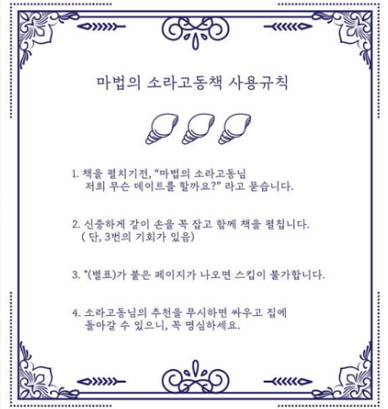 요즘 코로나19로 인해서 많은 커플들이 데이트코스를 찾지 못하고 헤메고 있는데 그 커플들을 위해 준비한 책이 바로 <마법의 소라고동책>이다.