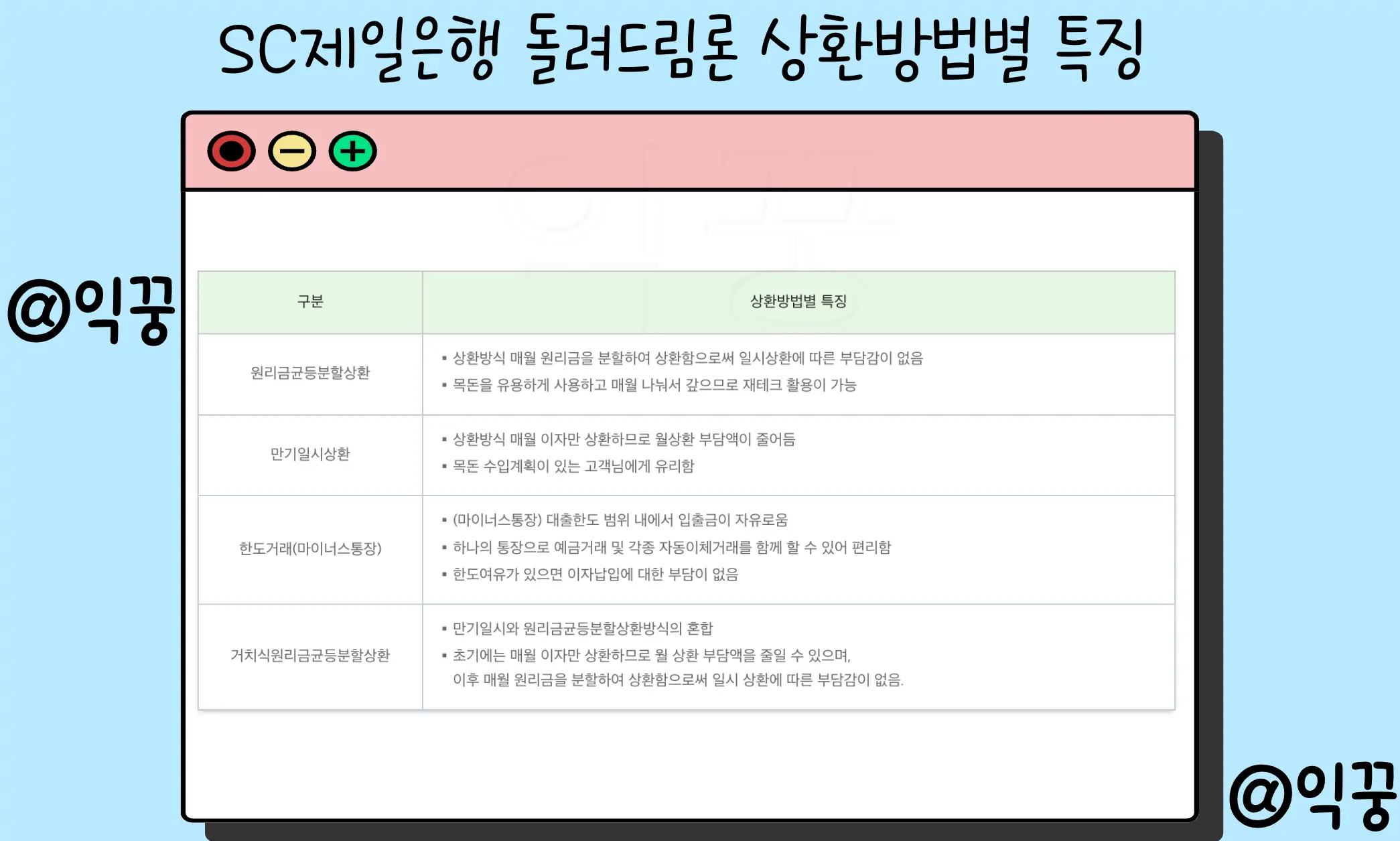 | SC제일은행 돌려드림론 기준금리에 따른 금리 |