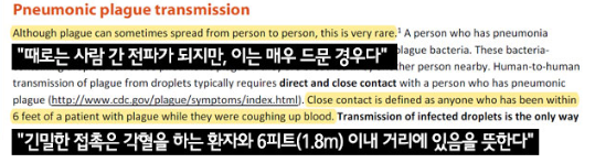 '쥐'로 전파되는 페스트의 경우 현대사회에서 전파되기 어려운 점이 있고 전파력이 낮은 것이 사실이지만, 사람과 사람 사이에 전파가 가능한 흑사병이라면 이야기가 달라진다.