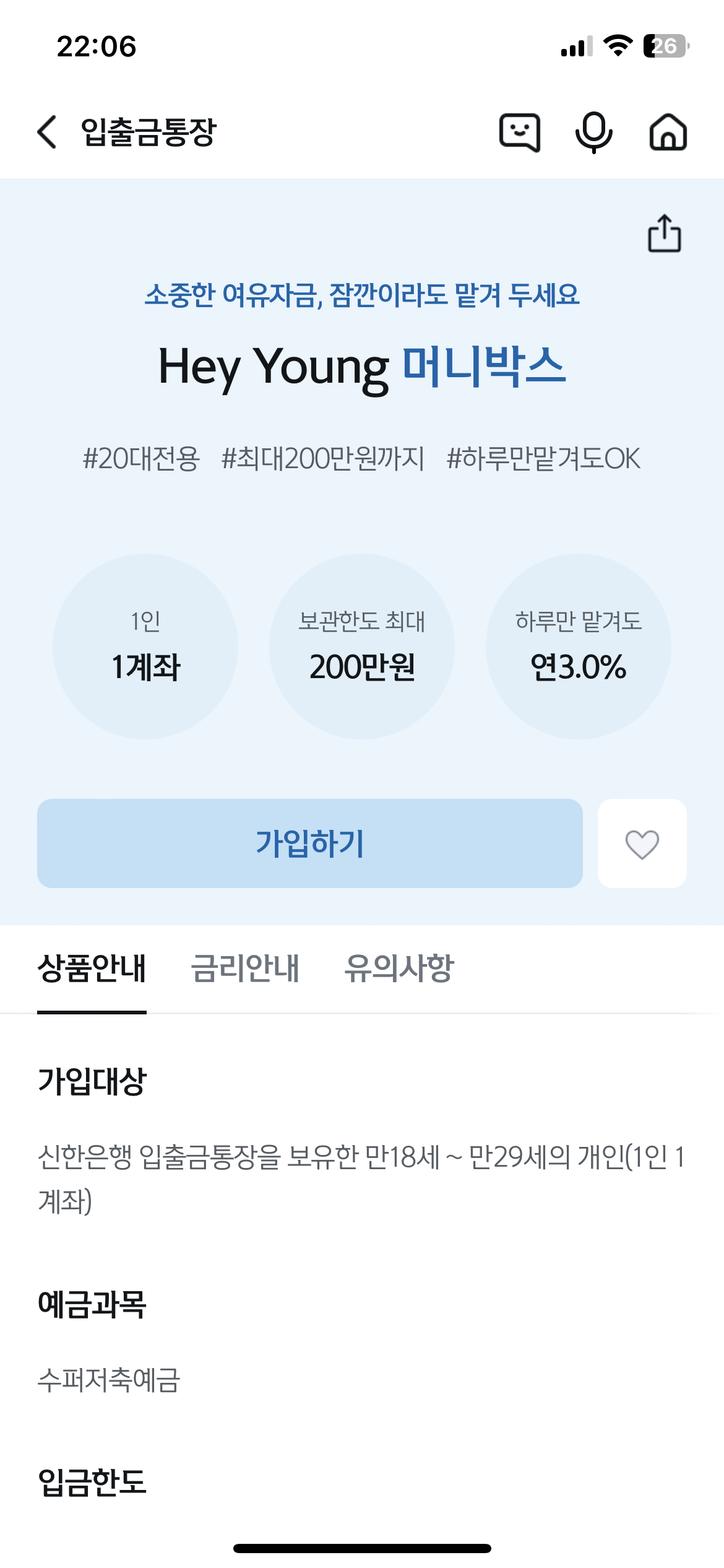 20대 파킹통장 연 3% 신한은행 헤이영머니박스 추천 우대금리 조건은?