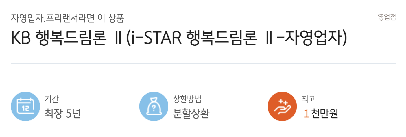 자영업자 및 프리랜서 대출 KB행복드림론2 신청자격 및 금리 추천이유1