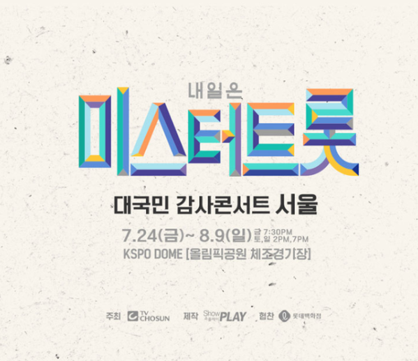 TV조선 '내일은 미스터트롯' 감사 콘서트('미스터트롯' 콘서트)가 결국엔 송파구의 대규모 공연 집합금지에 대한 행정명령으로 계속해서 연기되고있다. 이번이 벌써 네 번째 연기이다.