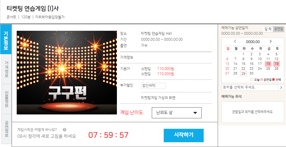 티켓팅 연습사이트에서 예매연습을 하자