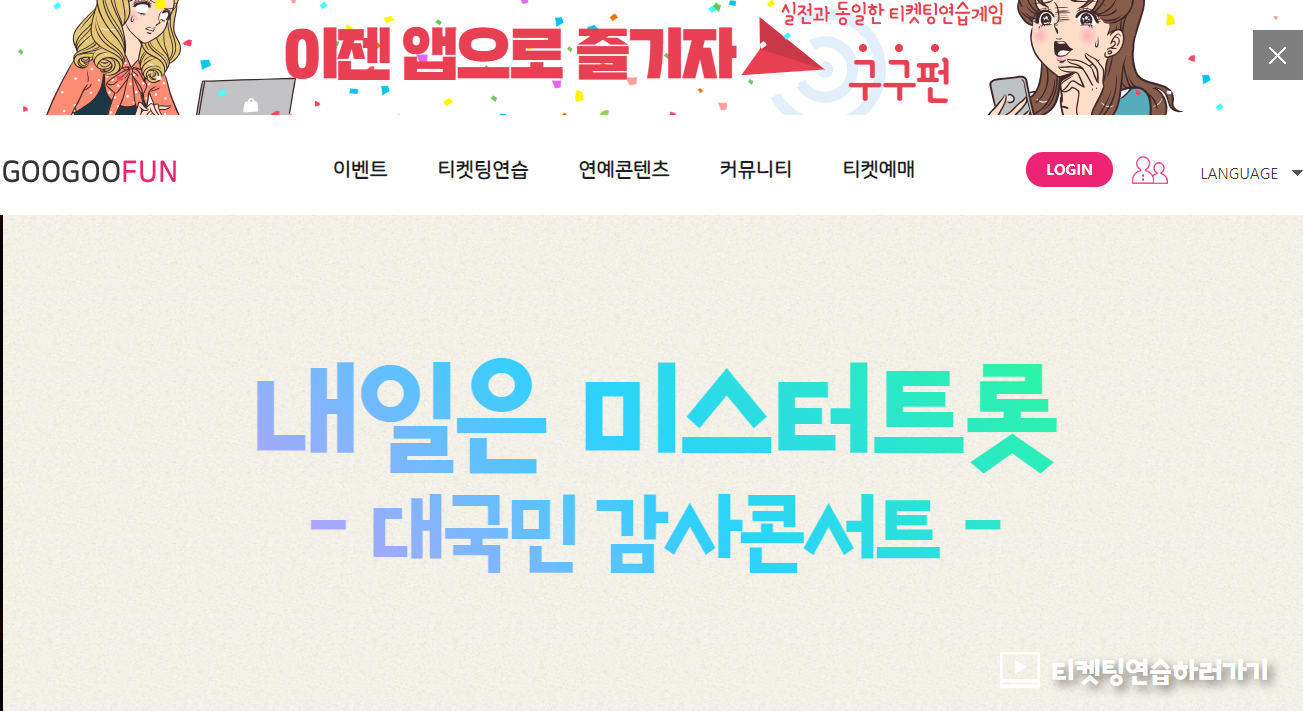 구구펀에 가입한 후에 로그인을 해서 <I사 예매연습>을 실시하자.