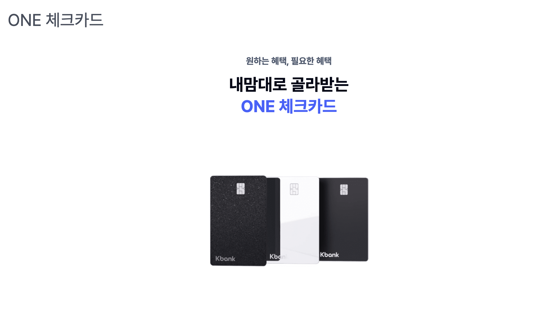 필자가 생각할 때 케이뱅크 ONE 체크카드는 신용카드를 버리고 체크카드를 사용해 돈을 모으고자 하는 소비자들에게 최적화된 체크카드 중 하나라고 할 수 있다.