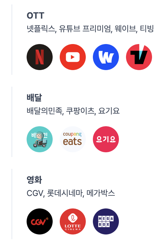 - 추천 대상 : 특정 업종에서 자주 소비하는 사람들에게 가장 많은 혜택을 제공하는 선택지다. 자주 이용하는 브랜드가 목록에 있다면 큰 캐시백을 받을 수 있으니 카페를 자주 가거나, 구독 서비스를 사용하는 사람이라면 이 옵션이 유리하다.