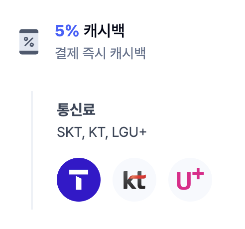통신 3사 요금제를 결제할 때 '여기서 더 캐시백' 혜택을 선택했다면 5%를 캐시백받을 수 있다. 10만 원짜리 요금제를 사용한다면 5,000원을 할인받을 수 있으나, 요즘 대세인 알뜰폰을 사용한다면 크게 메리트가 있다고 하기 어려울 수 있다.