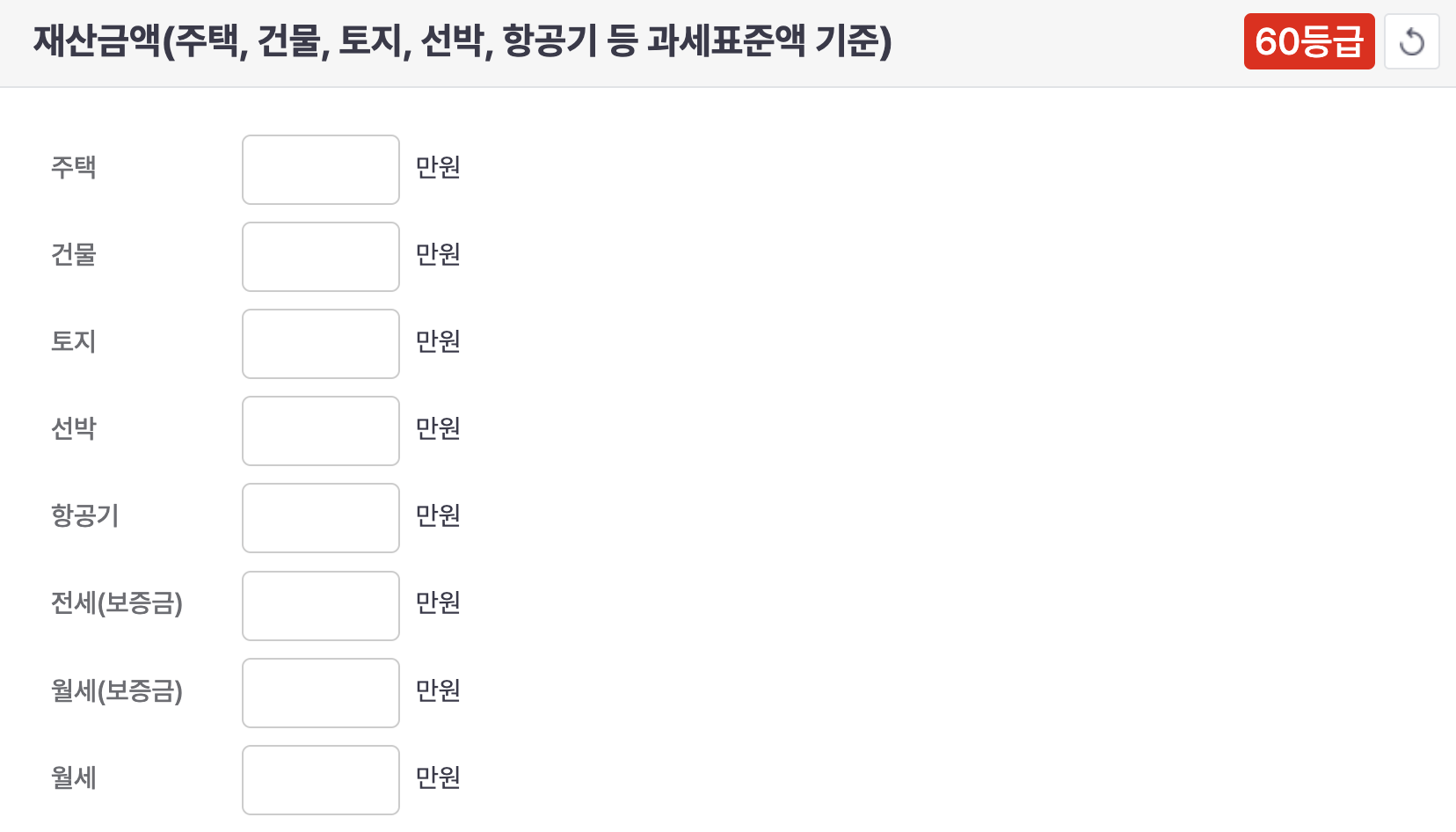 재산금액은 시가 또는 공시가격이 아니라 재산세 과세표준액을 기준으로 입력해줘야 한다.