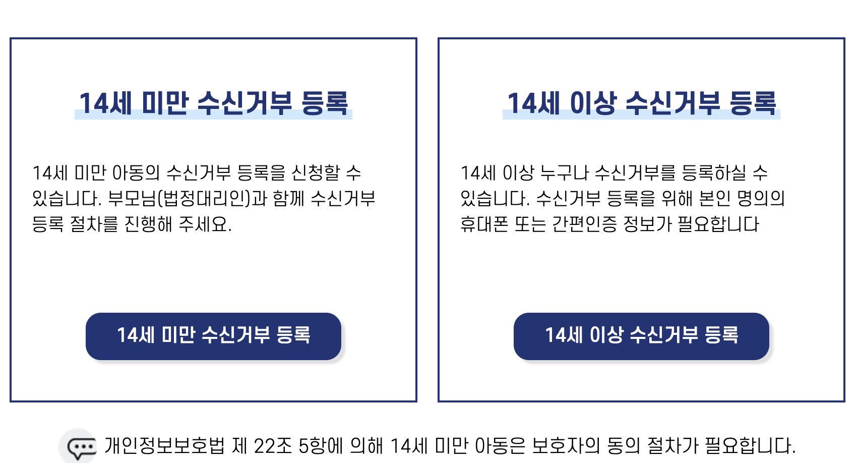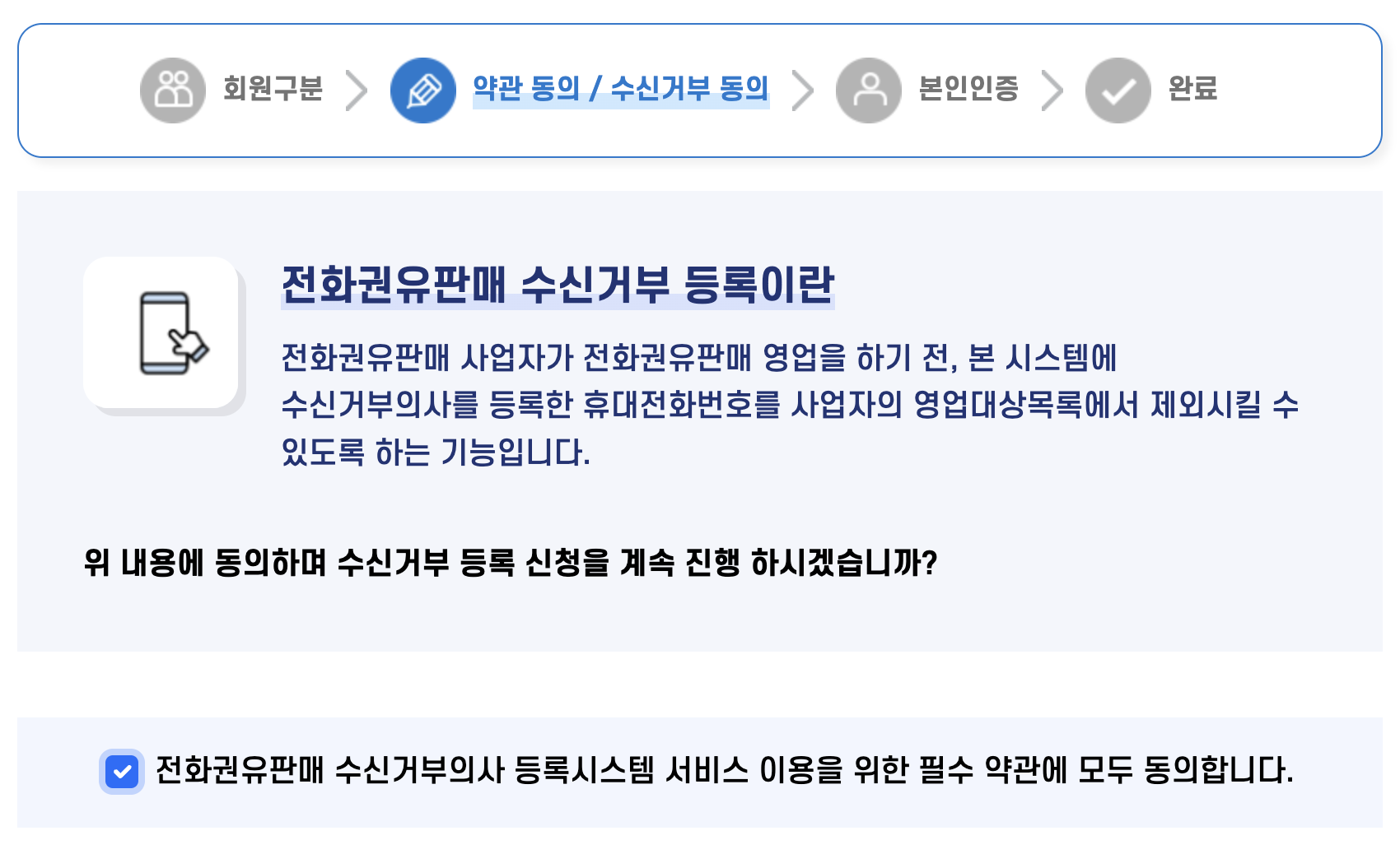 - [소비자] - [수신거부 등록] 순서대로 선택