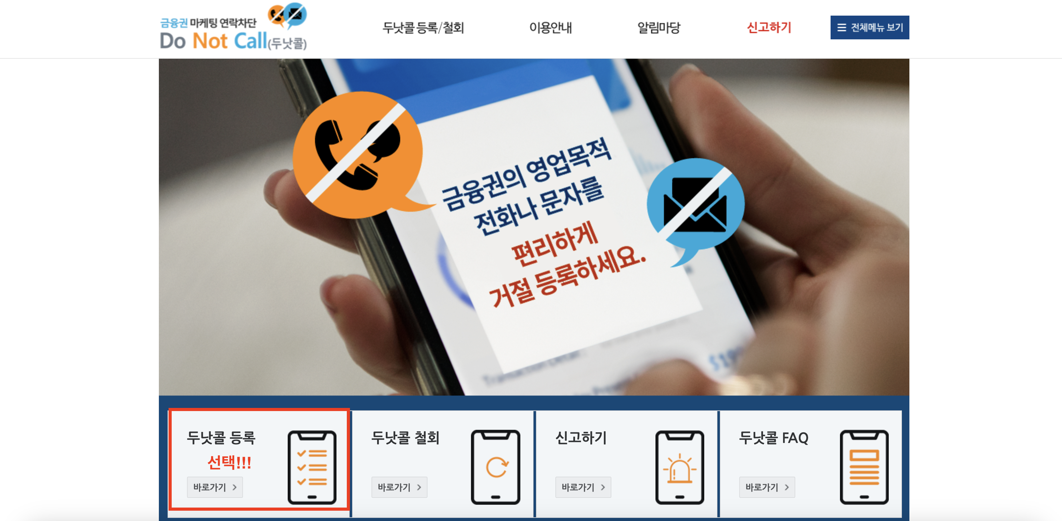 아래의 순서대로 진행하면 1분 안에 수신거부의사를 등록하고 전화를 통해 권유하는 모든 연락을 차단할 수 있다.