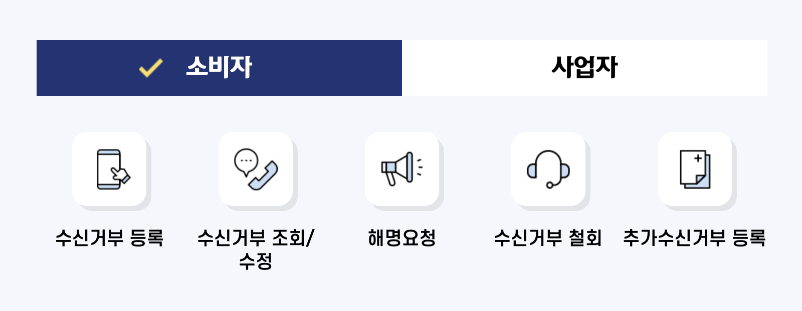 - [소비자] - [수신거부 등록] 순서대로 선택