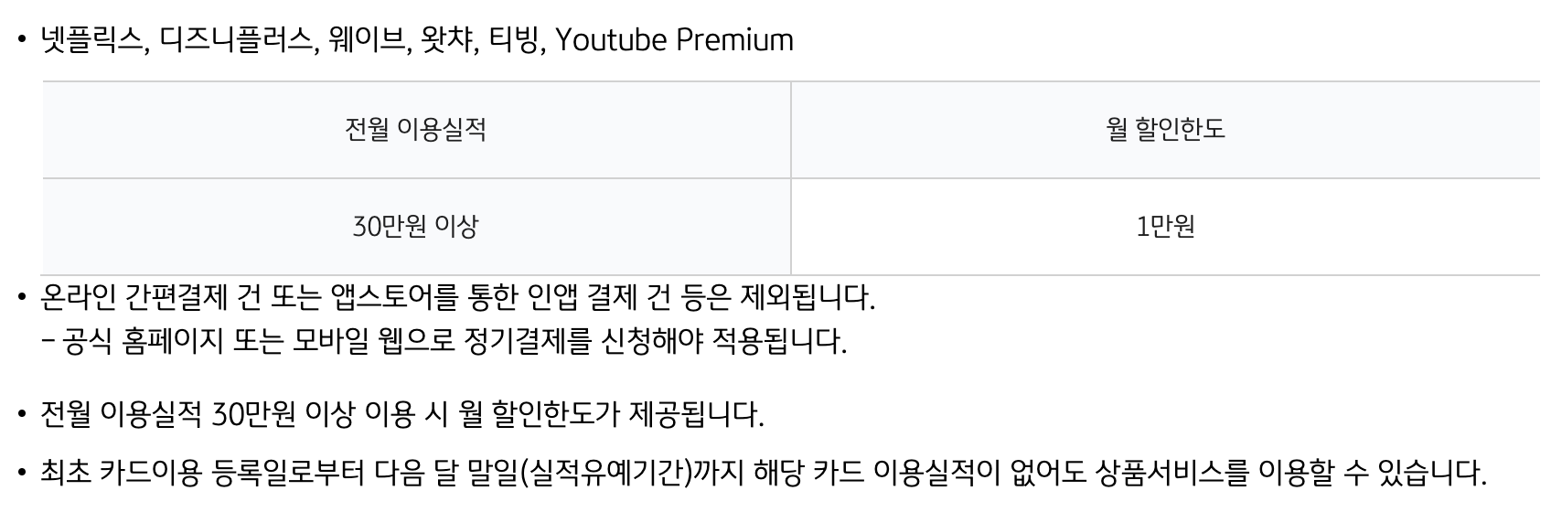 본 혜택은 OTT서비스를 자주 이용하는 사람이라면 매력적이라고 느낄 수밖에 없으며, 매달 지출해야 할 실질적인 금액이 줄어들기 때문에 그동안 재테크의 기본인 절약에 있어서 OTT 멤버십 비용을 지출하는 것이 내심 찔렸던 사람들에게 큰 도움이 될 것으로 보인다.
