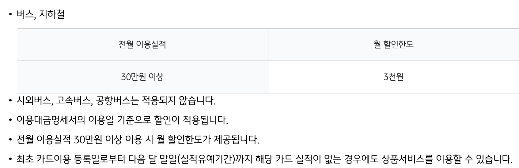 게다가 이 카드는 대중교통이나 편의점을 이용하더라도 이용금액의 5%를 다시 청구할인 해주기 때문에 일상생활에서도 사용하며 실적을 채움과 동시에 할인까지 받을 수 있는 매력적인 카드인 것이다.