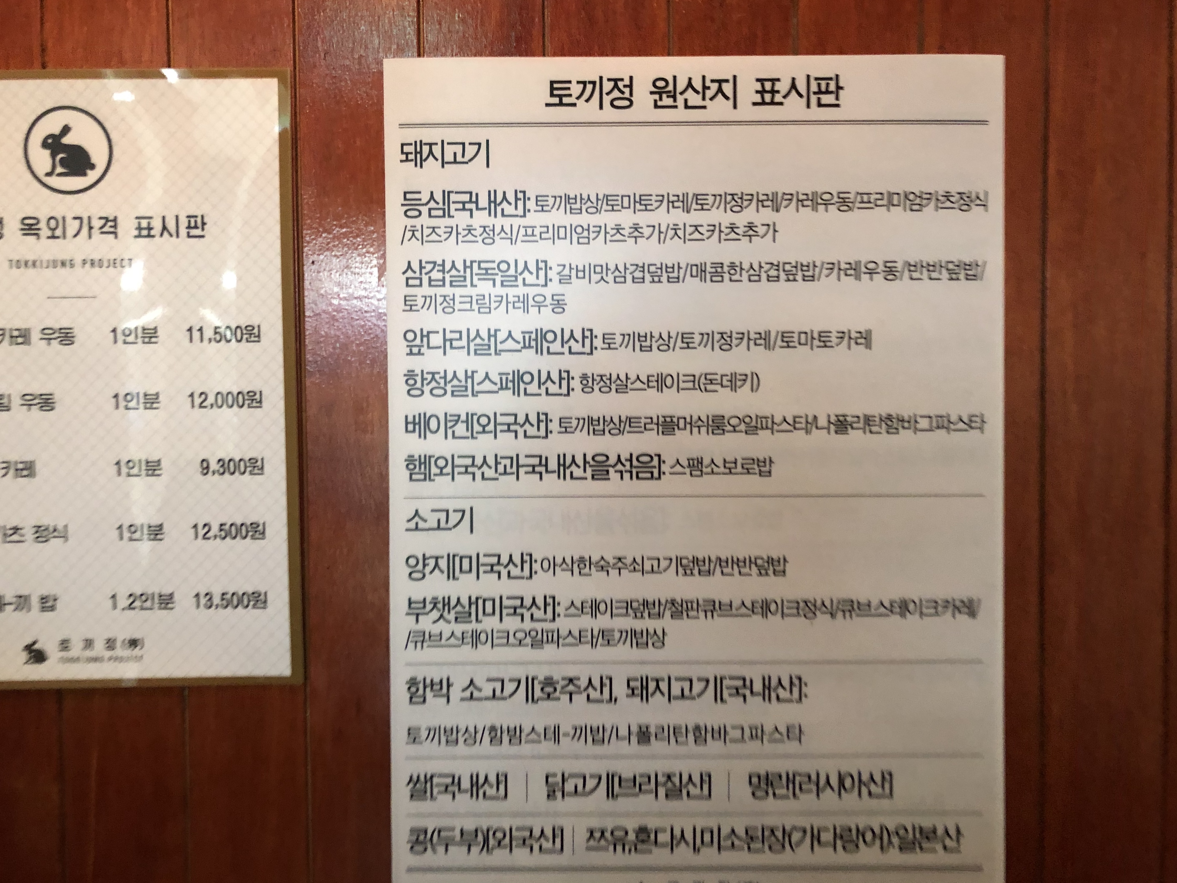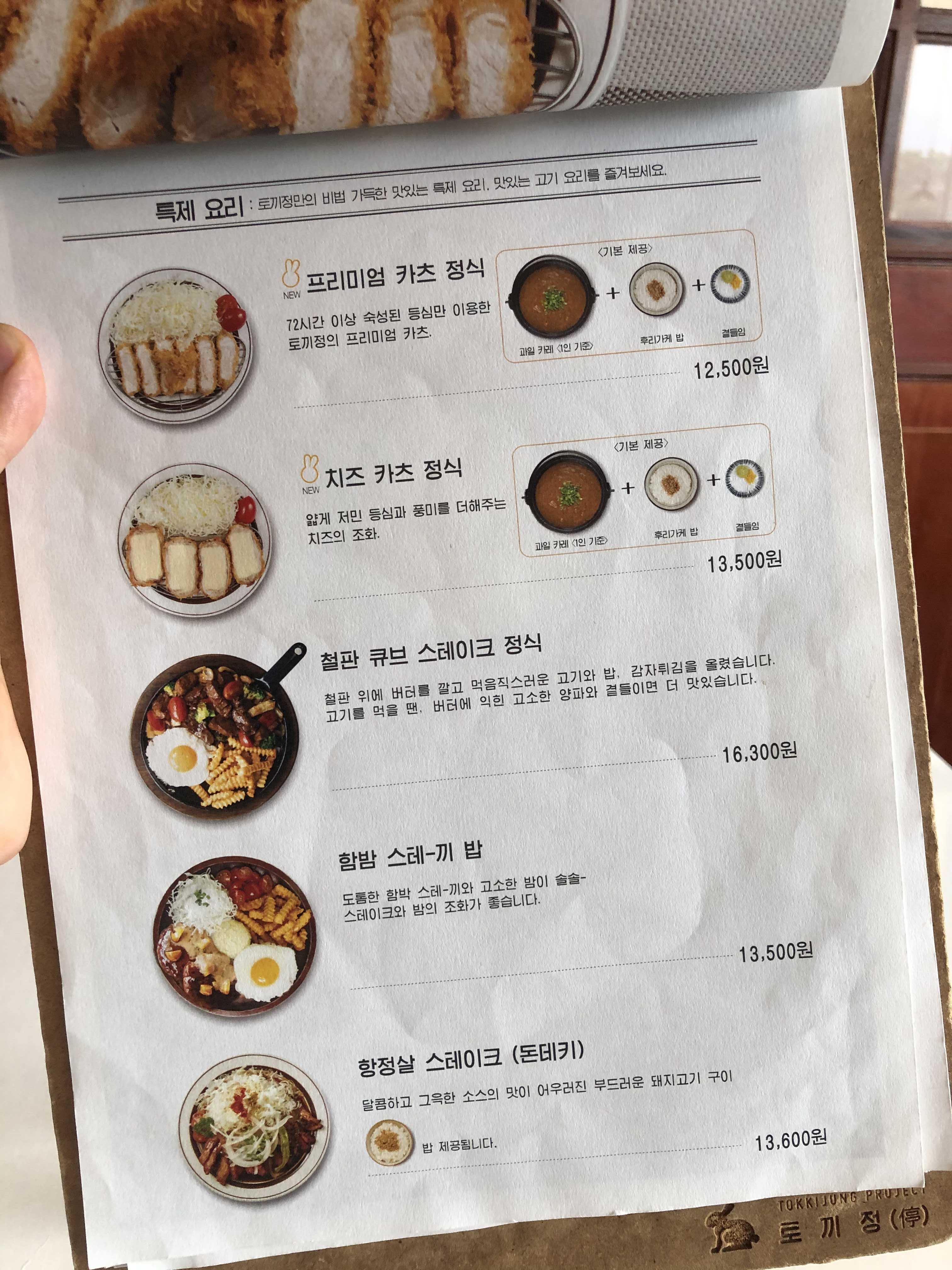 토끼정을 처음 가 본 나는 무슨 메뉴를 먹어야할지 고민에 빠졌다.