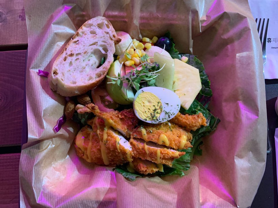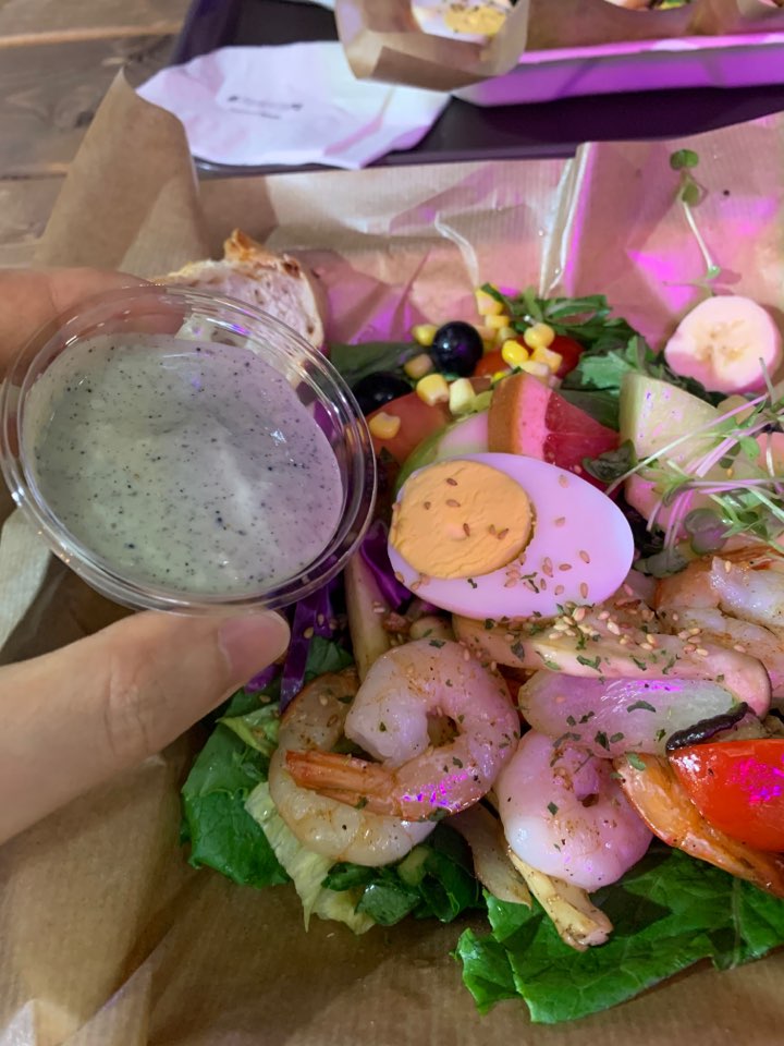 일단 싱싱한 과일과 채소/야채를 먹을 수 있고, 그와 곁들여서 먹을 수 있는 다양한 토핑때문에 평소 샐러드를 잘 먹지않았던 사람도 맛있게 먹을 수 있을 것 같다.