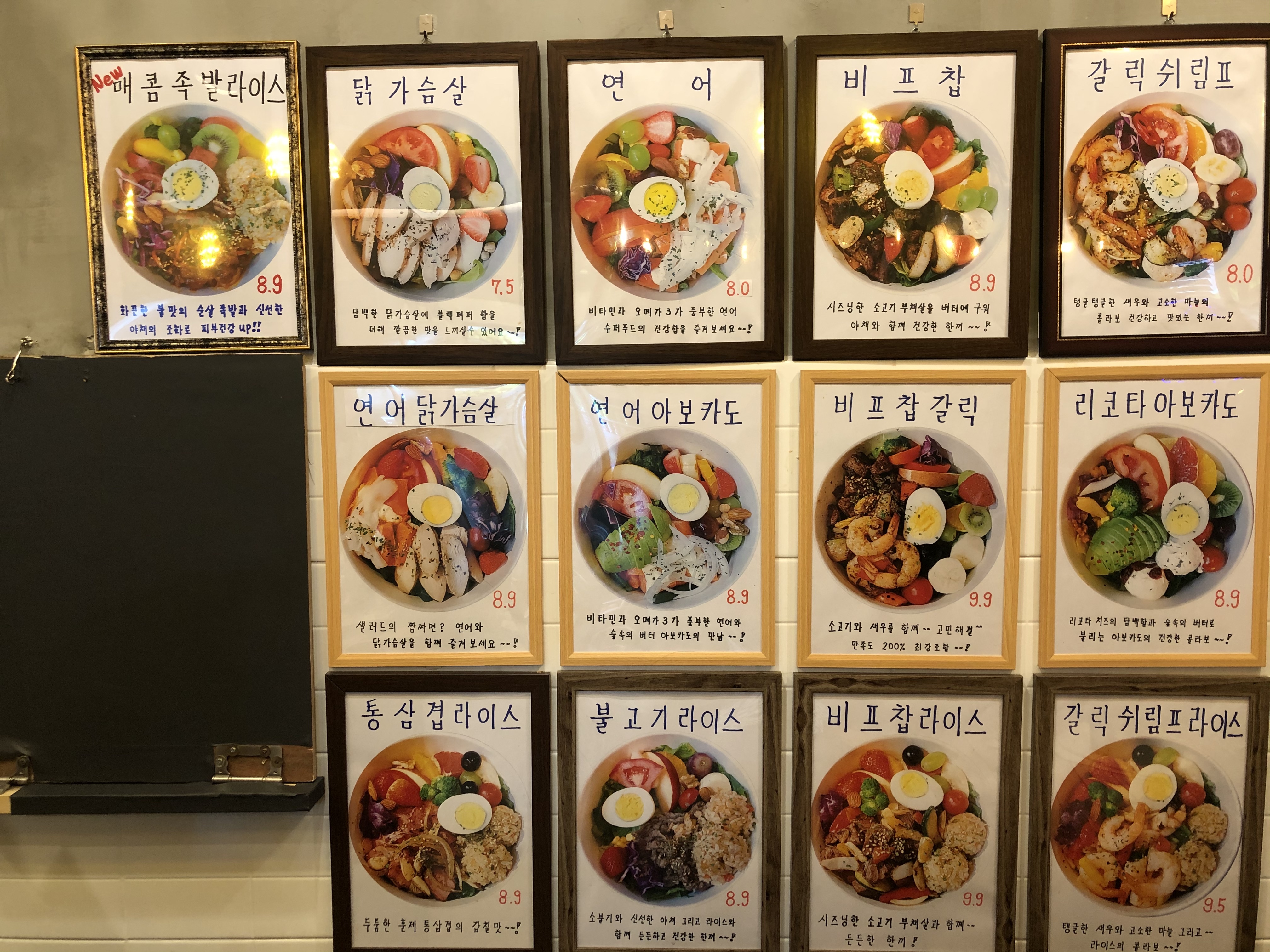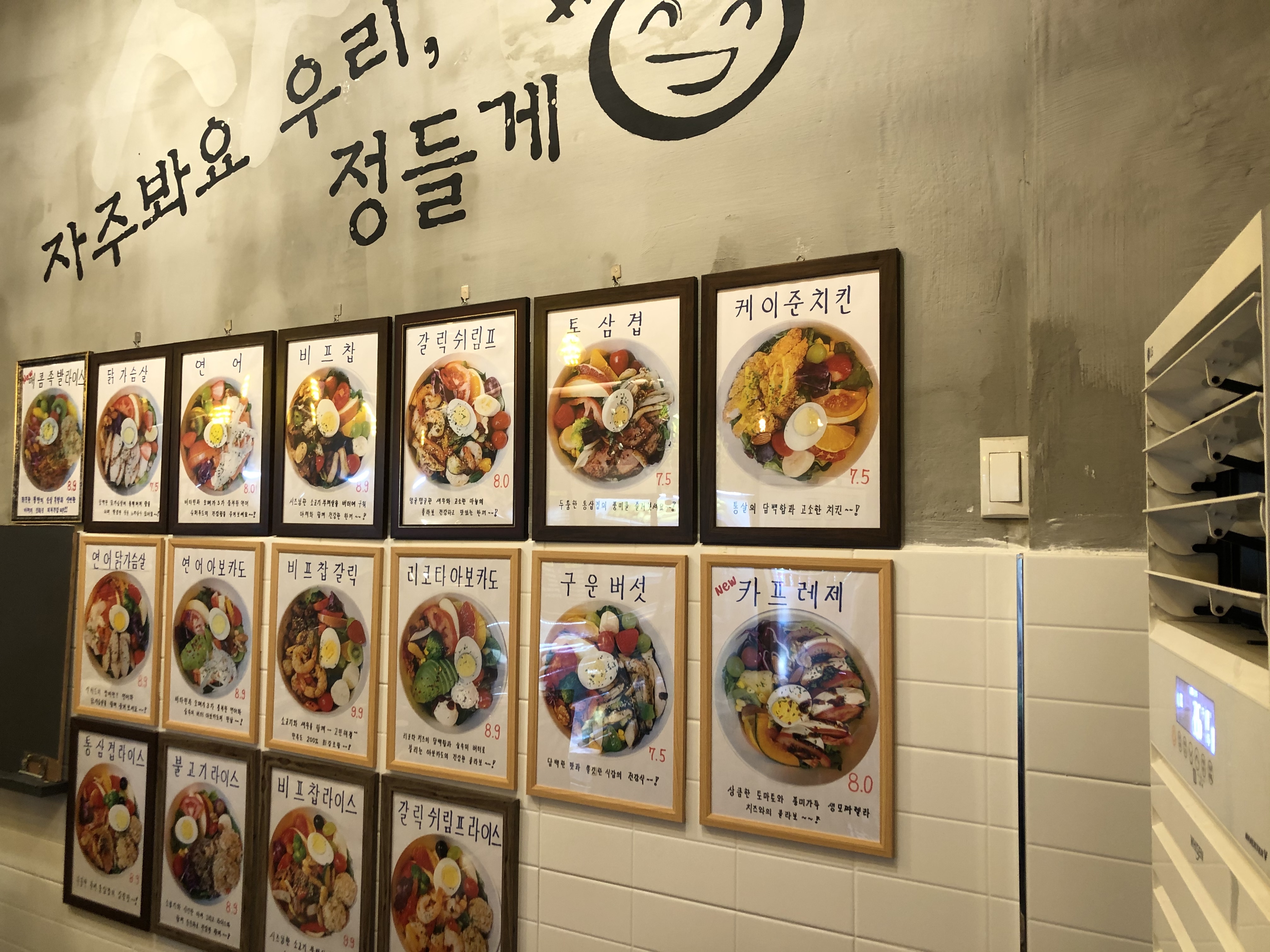 심풀 매장에 들어가면 한 쪽 벽면에 모든 메뉴가 사진과 함께 보기좋게 액자에 걸려있다.