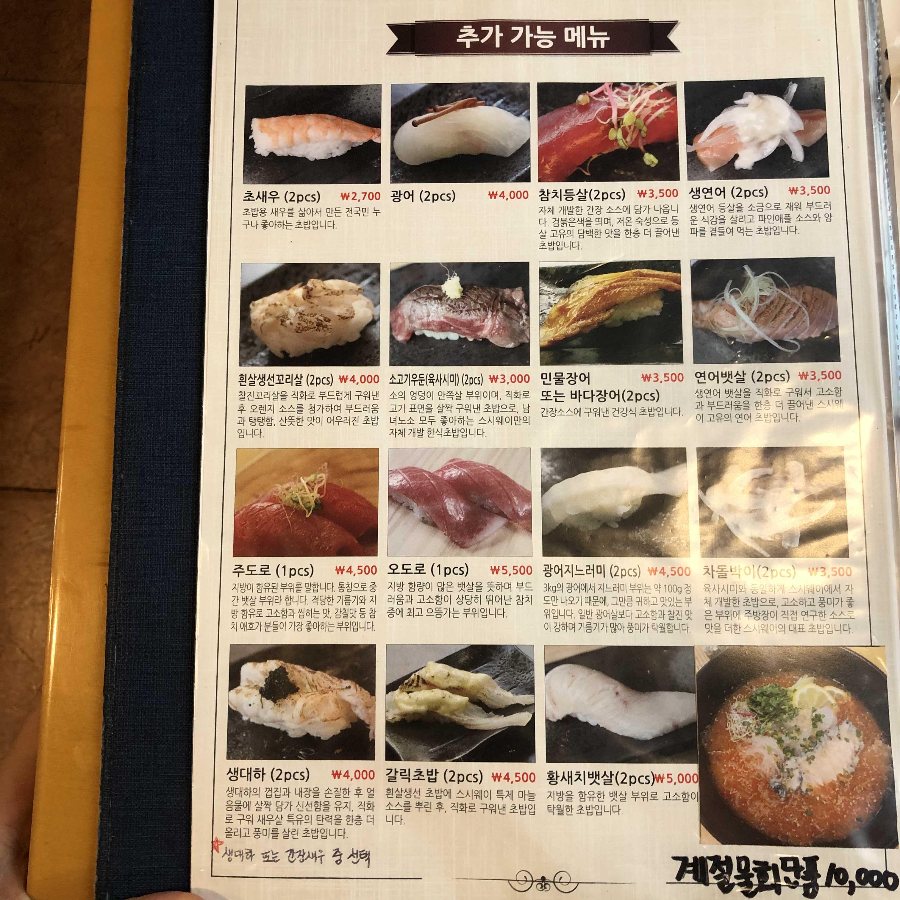 초밥의 메뉴는 A,B로 나누거나 특/스페셜 초밥이 있다. 데이트 때는 개인적으로 스페셜보다는 '코스정식' 을 추천한다.