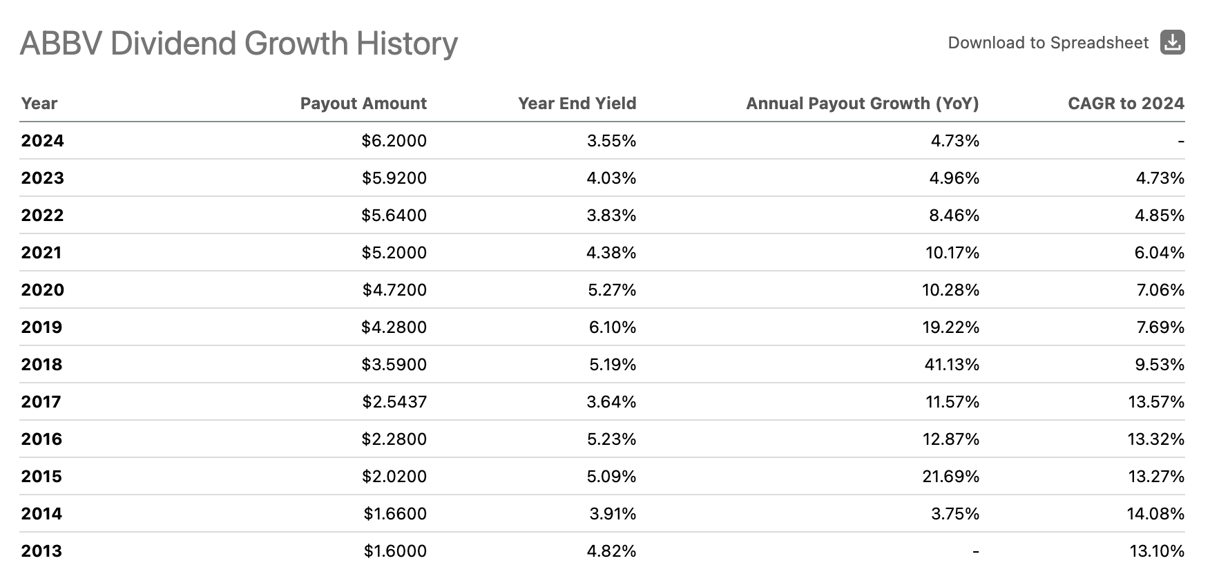 애브비는 현재(2025년 4월 23일 기준)173.78달러의 주가와 3.7%가 넘는 매력적인 주당 배당률을 자랑하고 있다.