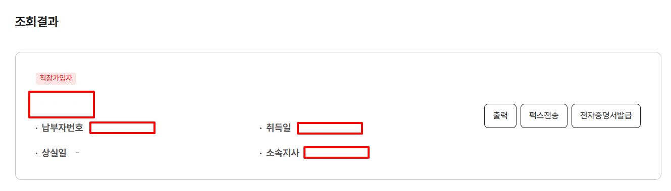그리고 최근 12개월 평균 금액을 조회하면 아래처럼 현재 내가 어떤 가입자인지 그리고 납부자번호부터 취득일 그리고 소속지사 등 다양한 정보를 확인하실 수 있을 거에요.