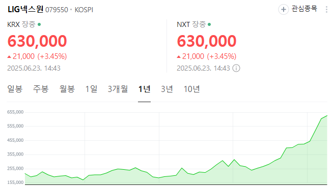 LIG 넥스원의 경우 1년 사이에 3배 이상 상승하면서 엄청난 저력을 보여주고 있어요.