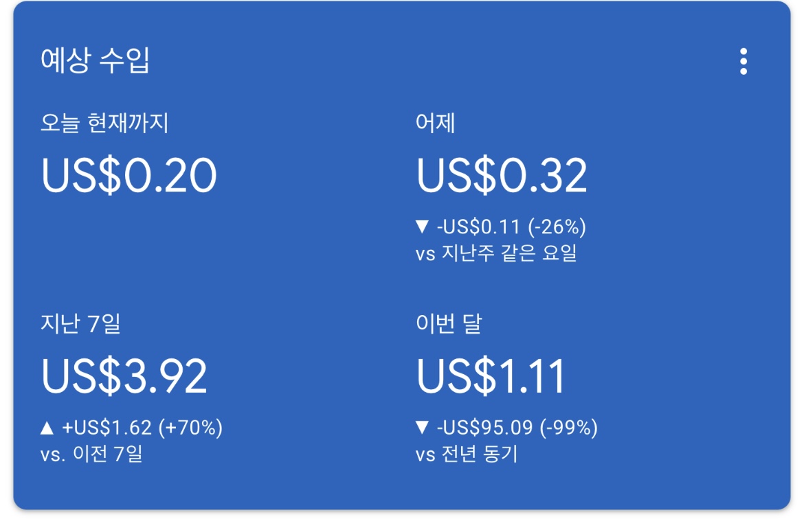 애드센스 수익을 마지막으로 받아본 게 아마 7월인가 8월인 거 같다. 그 이후에는 하루에 1달러도 채 나오지 않는 수익 때문에 사실상 블로그를 내려놓은 상태이고, 네이버 플랫폼으로 넘어가서 애드포스트로 하루에 1~3천 원 정도 벌이를 하고 있는 게 고작이다.