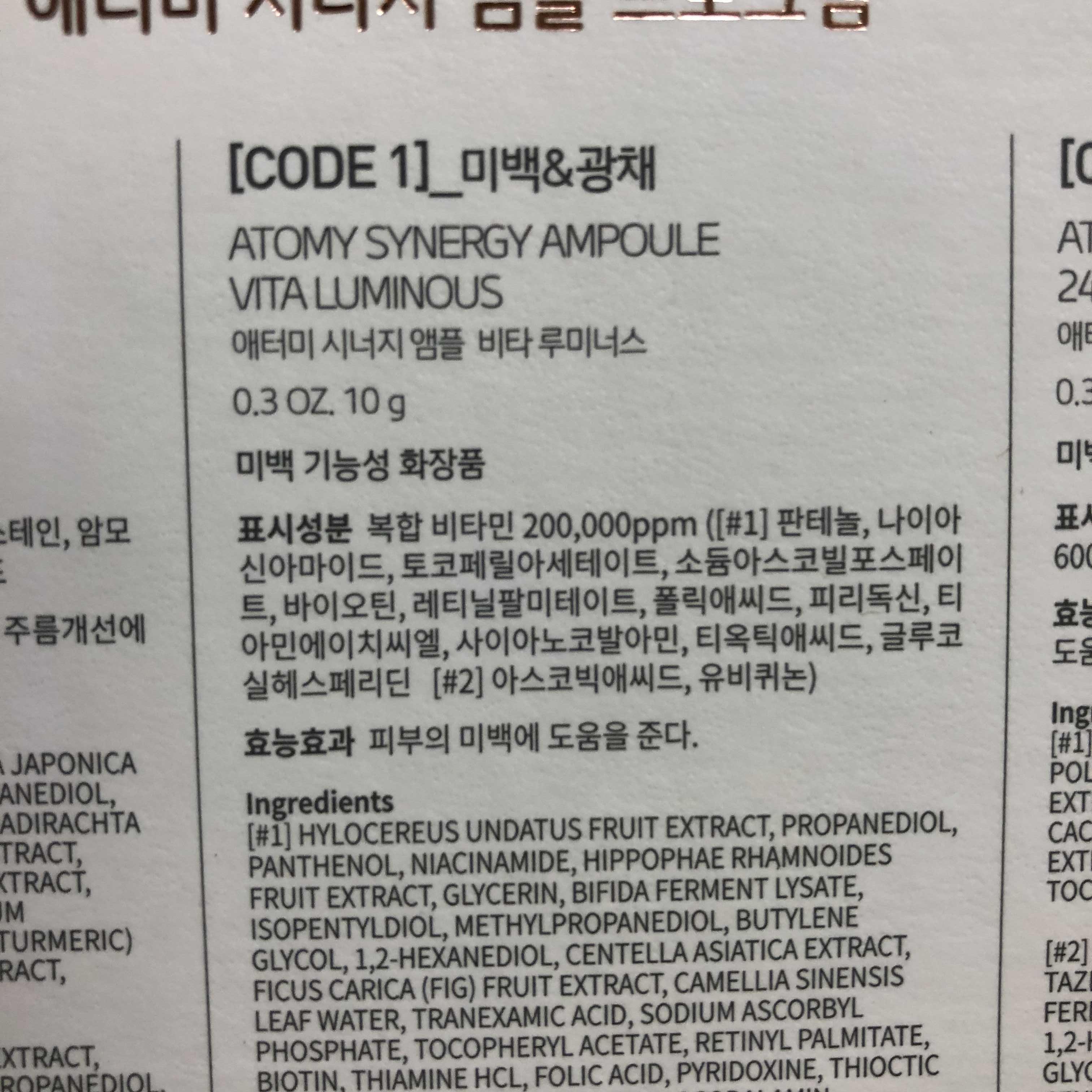앰플은 네 종류로 나뉘어있지만 공통적으로 들어가는 성분들이 있다.