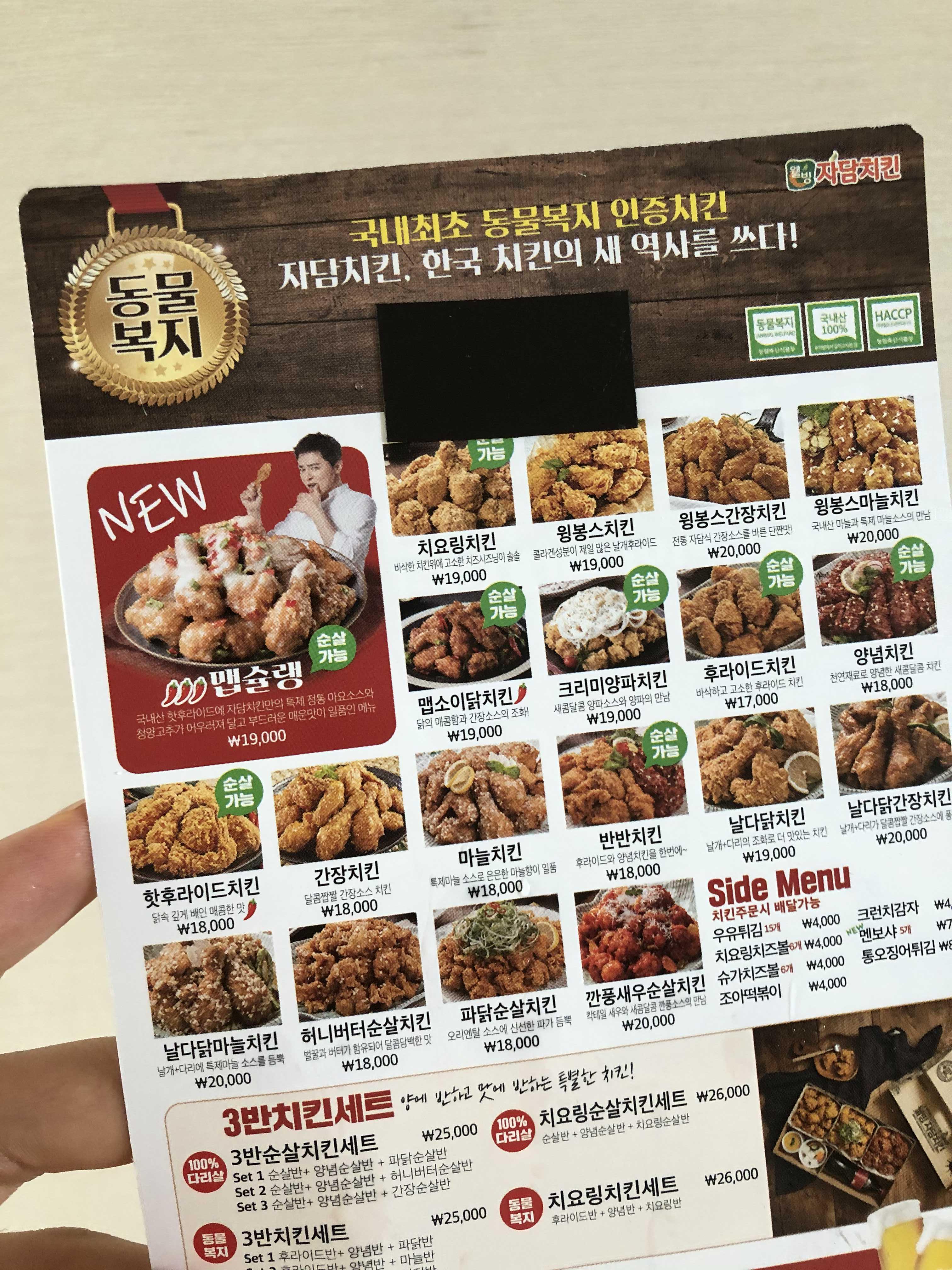 자담 맵슐랭 치킨을 포함한 치요링 맵소이 윙봉스 등 다양한 종류의 치킨이 있으며, 기회가 된다면 가격을 본 후에 자신이 먹고싶은 것을 먹으면 되겠다.