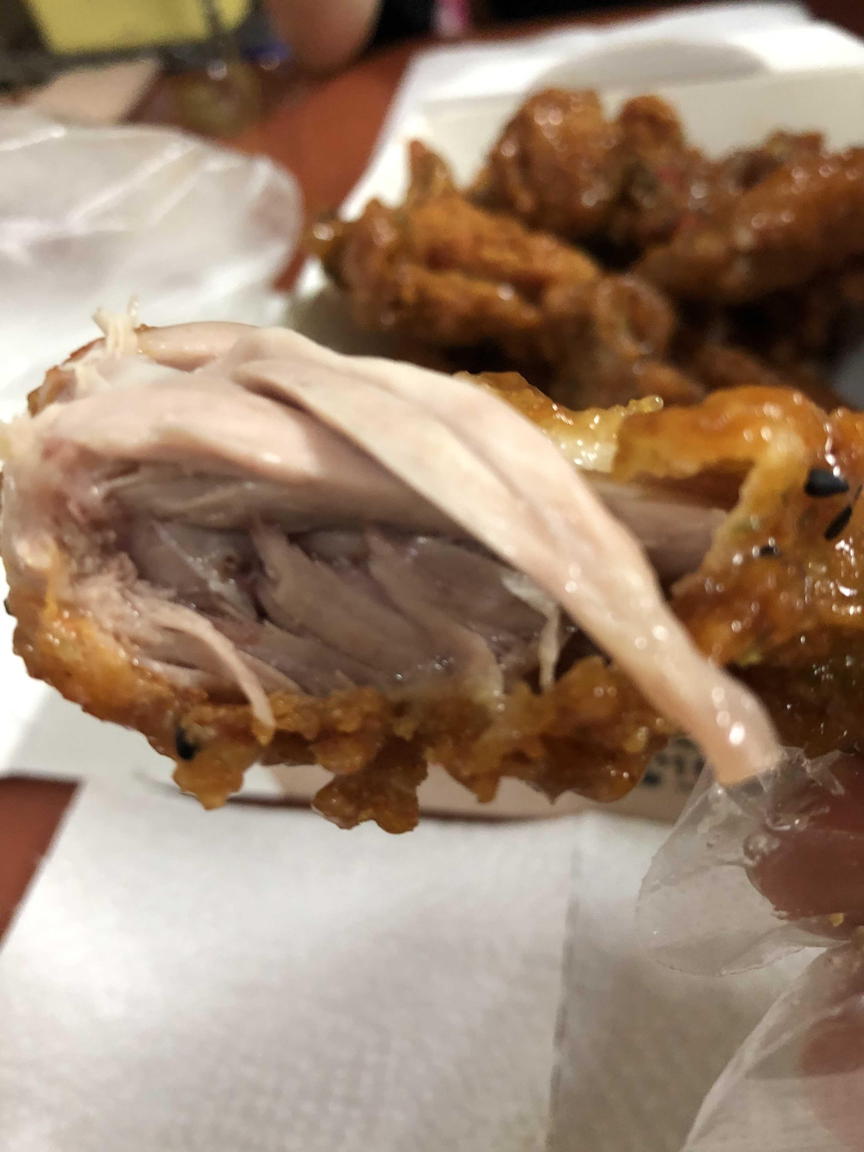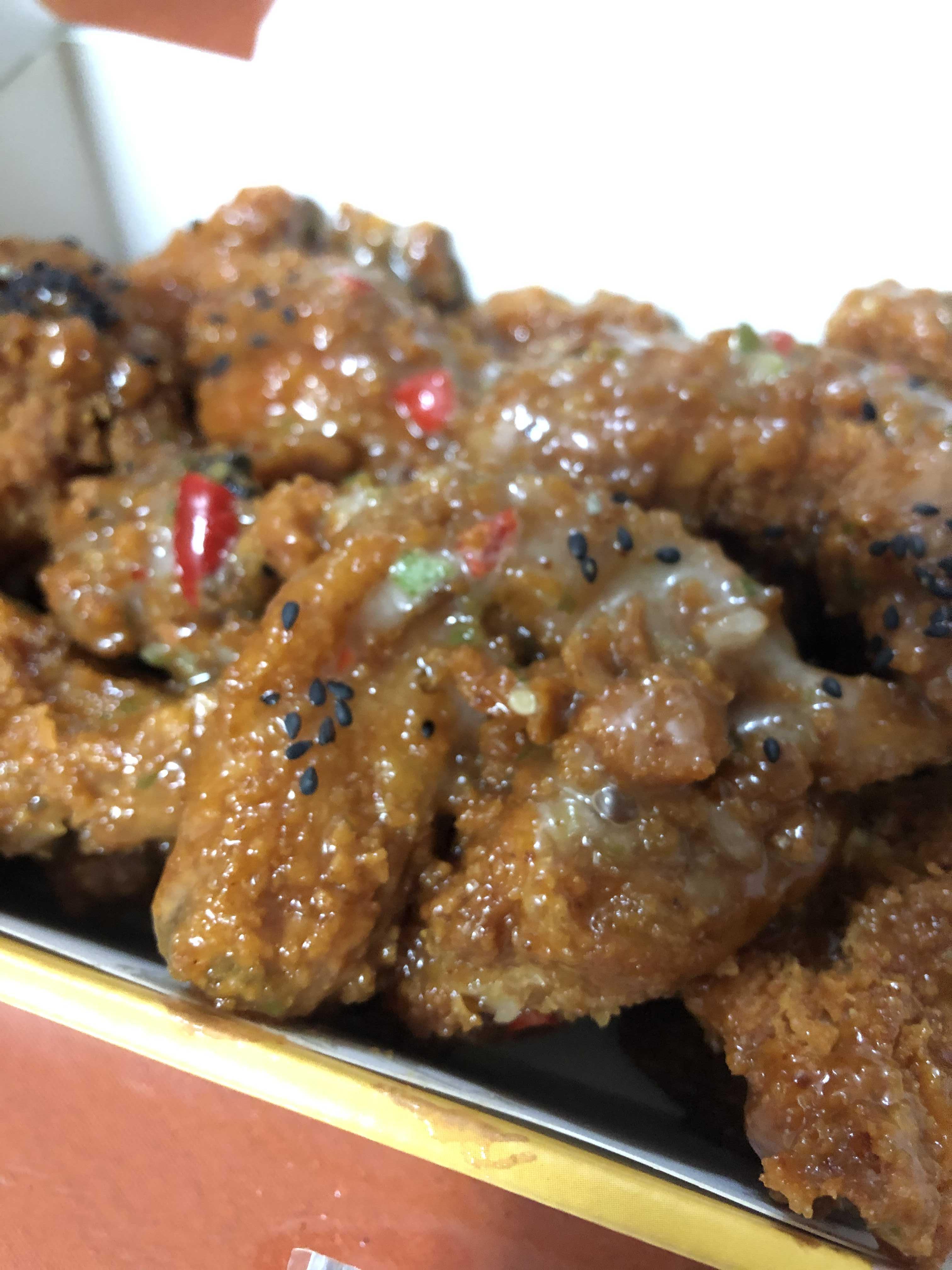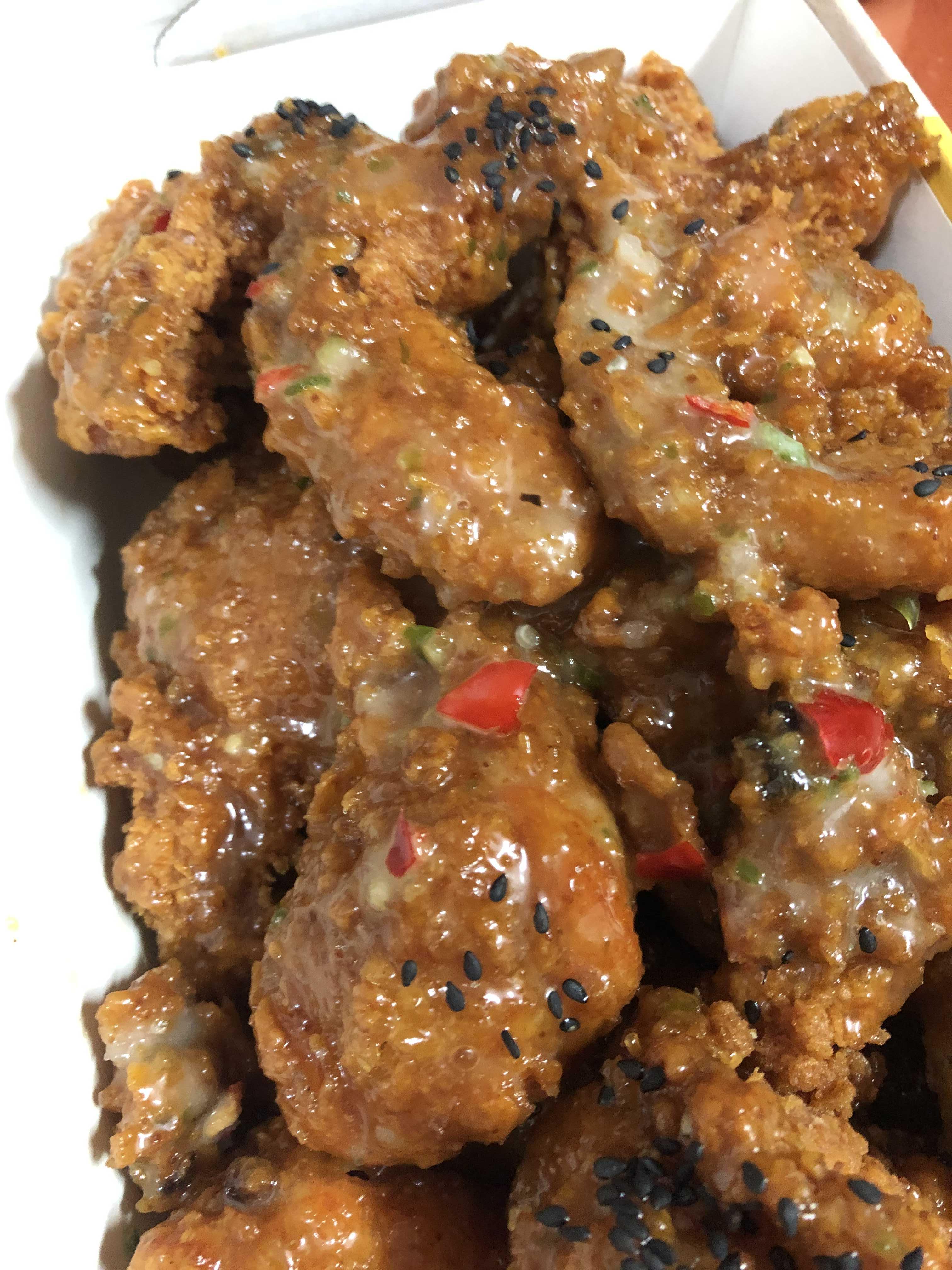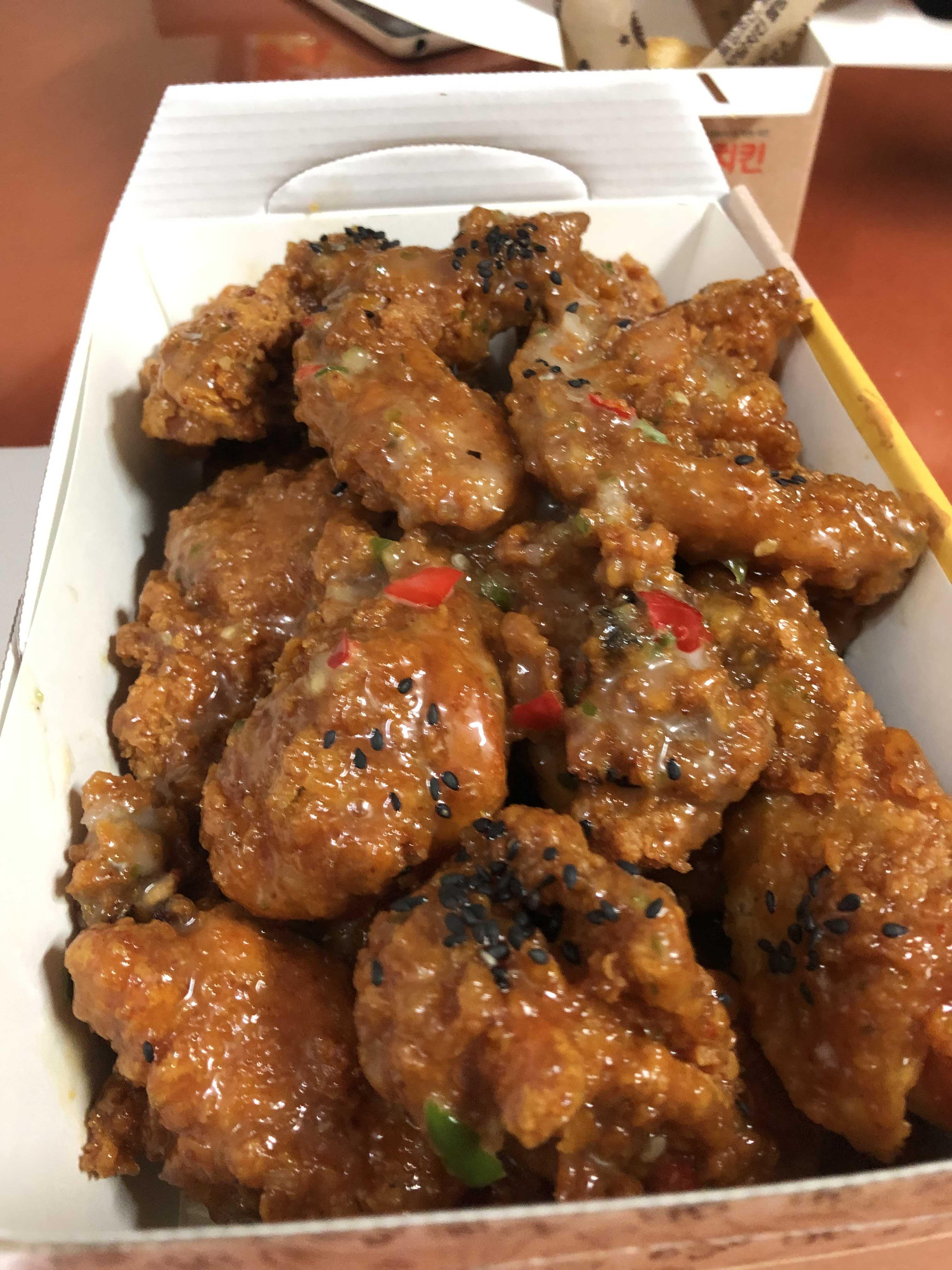 치킨은 매운 고추의 알싸함과 달달한 맛이 합쳐져서 굉장히 오묘한 맛을 내는데, 이게 특이하거나 이상하다가 아니라 진~짜 달콤한 매운맛(?)을 낸다.