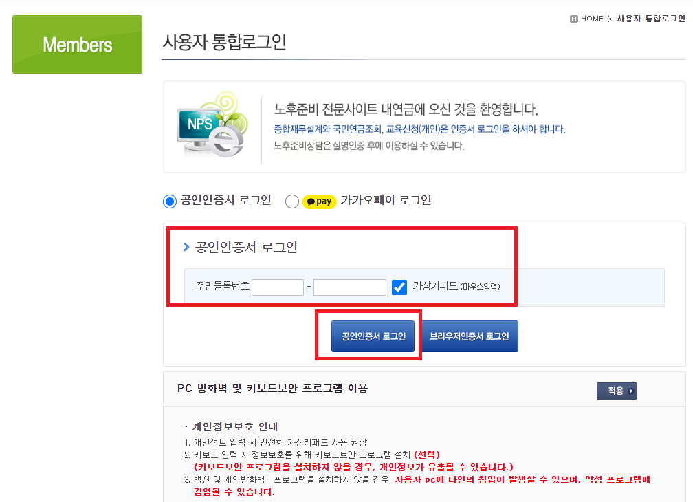 그럼 개인의 '공인인증서 로그인' 절차를 마치면 된다.