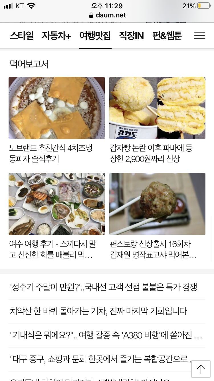 이번엔 다음 메인의 '여행맛집'코너에 내 글이 첫번째로 올라와있는 것을 알 수 있다.