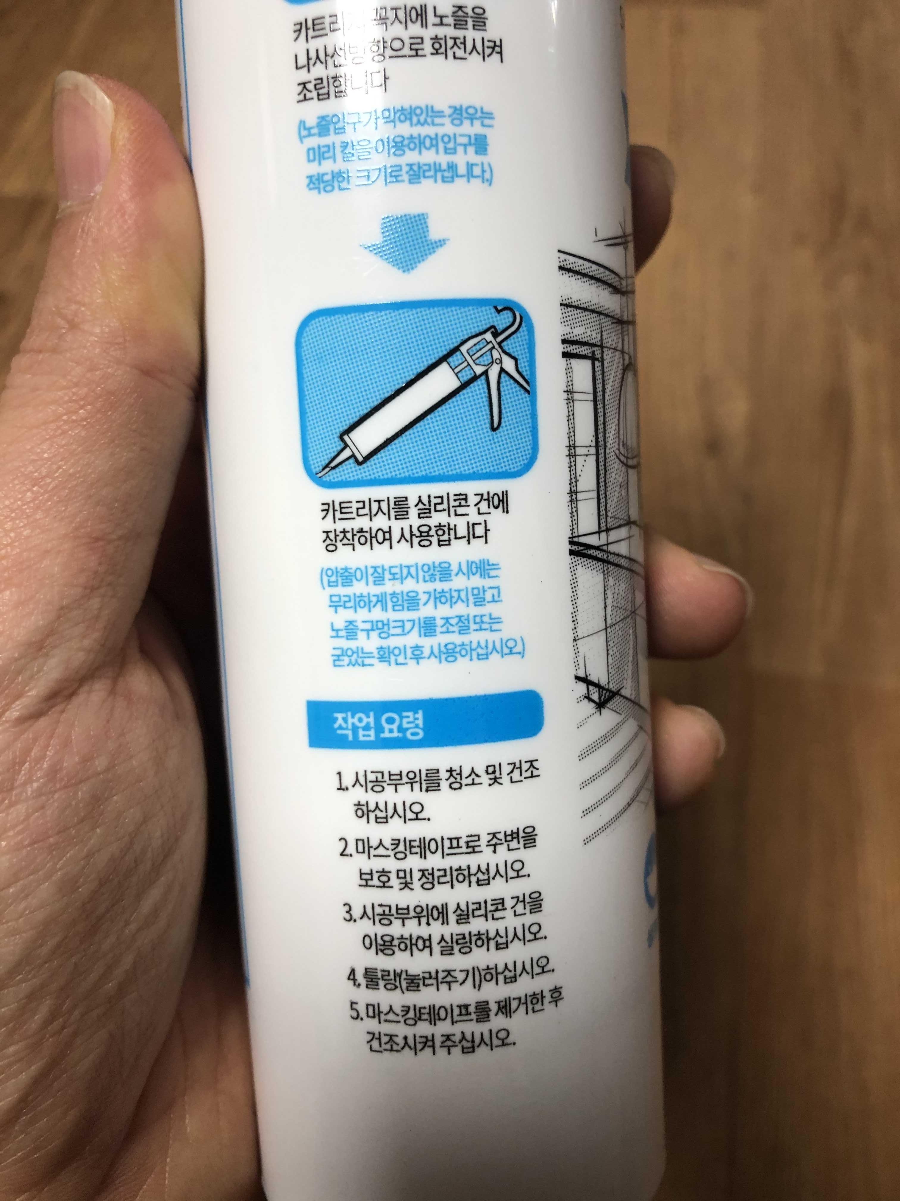 그 이후에 실리콘 건에 잘 끼우기만 하면 일단 사용하기 위한 준비는 다 된 것이다.