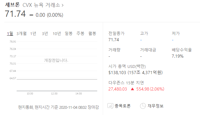 쉐브론을 본다면, 현재 72달러 정도로 가격을 유지하고 있으나, 정유업의 시황 자체가 별로 좋지 않고 유가의 방어가 안되는 시점에다가 쉐브론의 영업이익 또한 지속적으로 아래로 하락하고 있는 모습을 보인다.