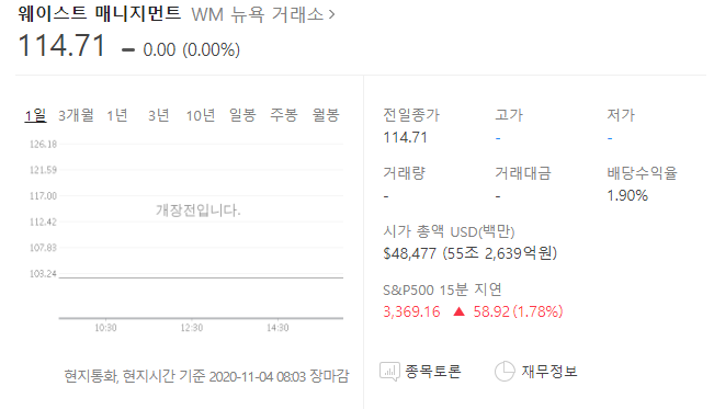 웨이스트매니지먼트사는 꾸준히 성장하는 모습을 보여준다.