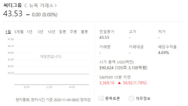 씨티그룹의 경우는 수혜주라고 보는 이유는 정확히 모르겠으나, 주가의 흐름을 보았을 때는 고점 80달러대에서 40달러대를 유지하고 있으며 순이익도 지속적으로 증가하고 있는 모습을 보여준다.
