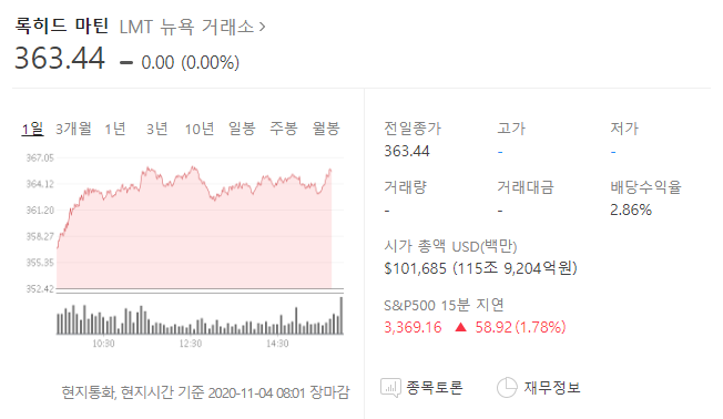 록히드마틴이라는 회사는 꾸준히 성장하고 있는 기업이나 4년이상 꾸준히 영업이익이 오르고 2배 이상이 되었다는 것은 괄목할 만한 기업이라는 증거.