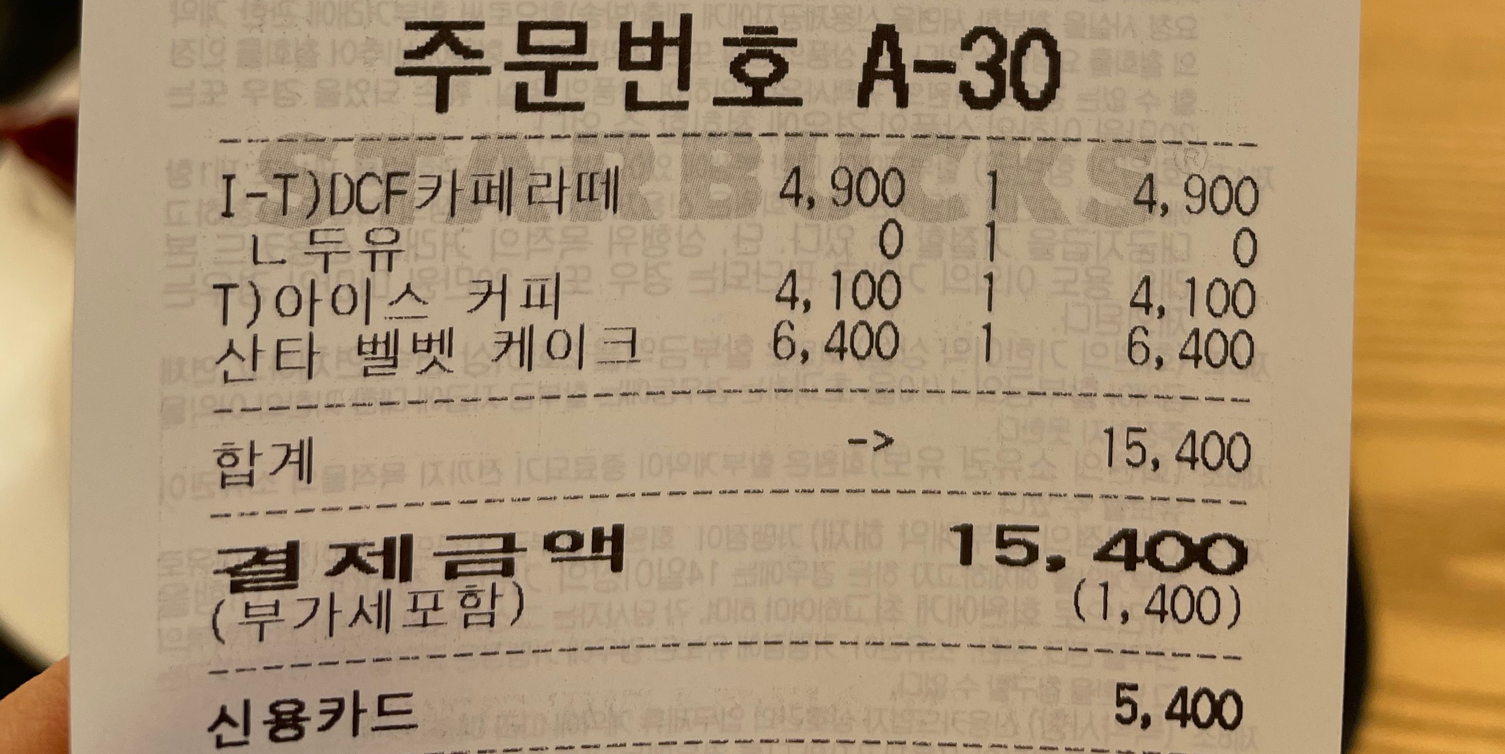 함께 주문한 음료는 디카페인 두유라떼와 오늘의 커피다.