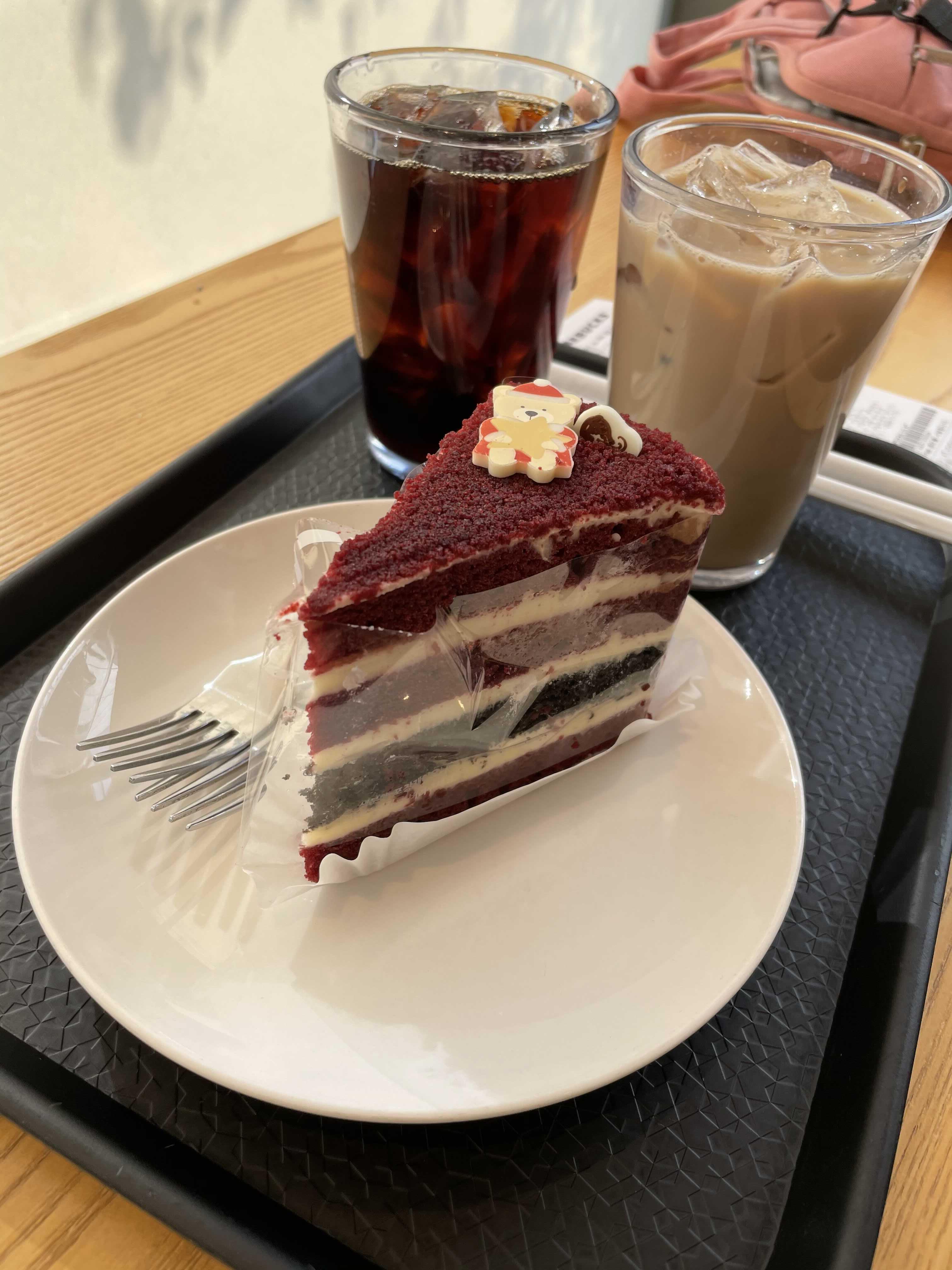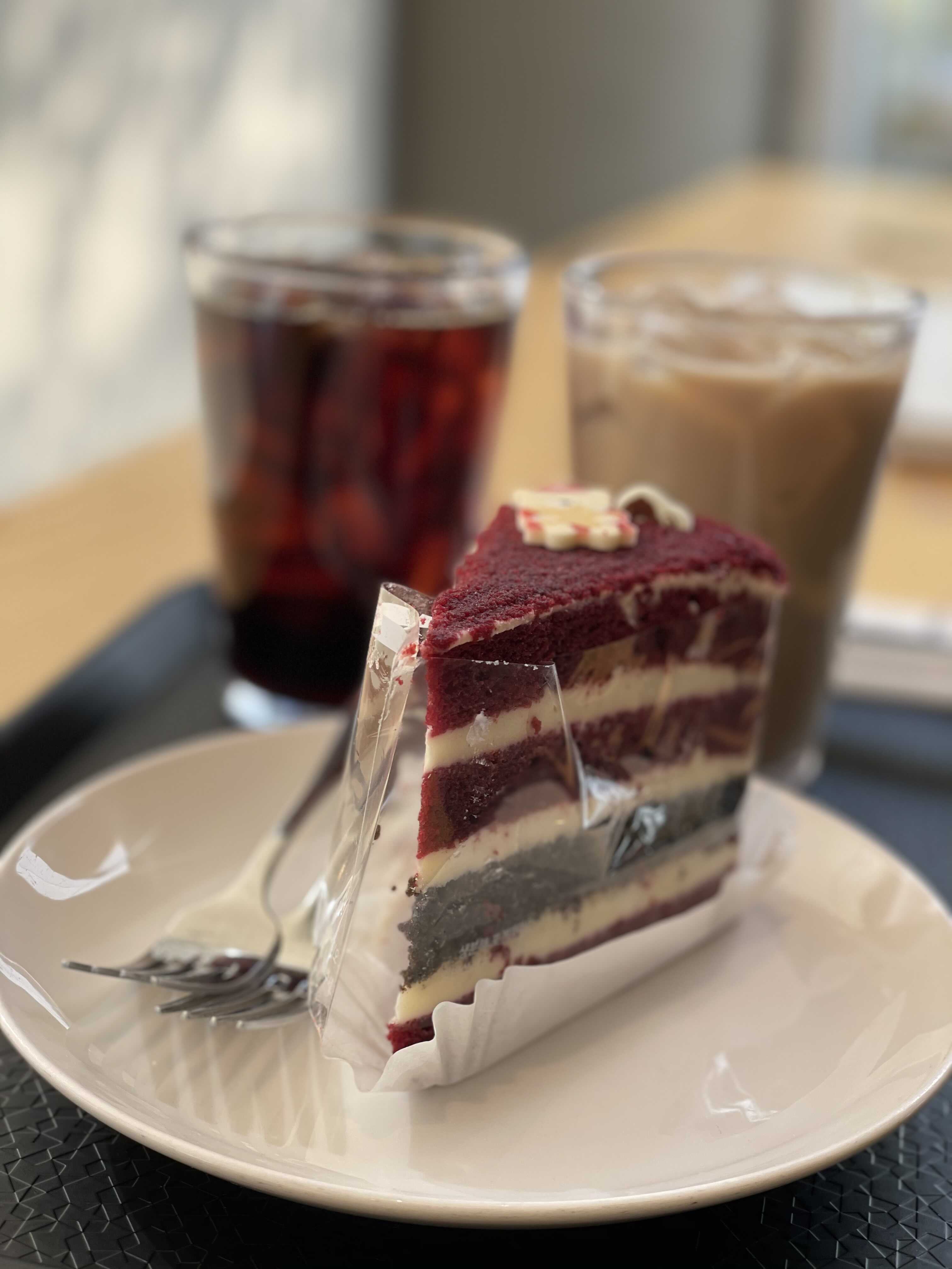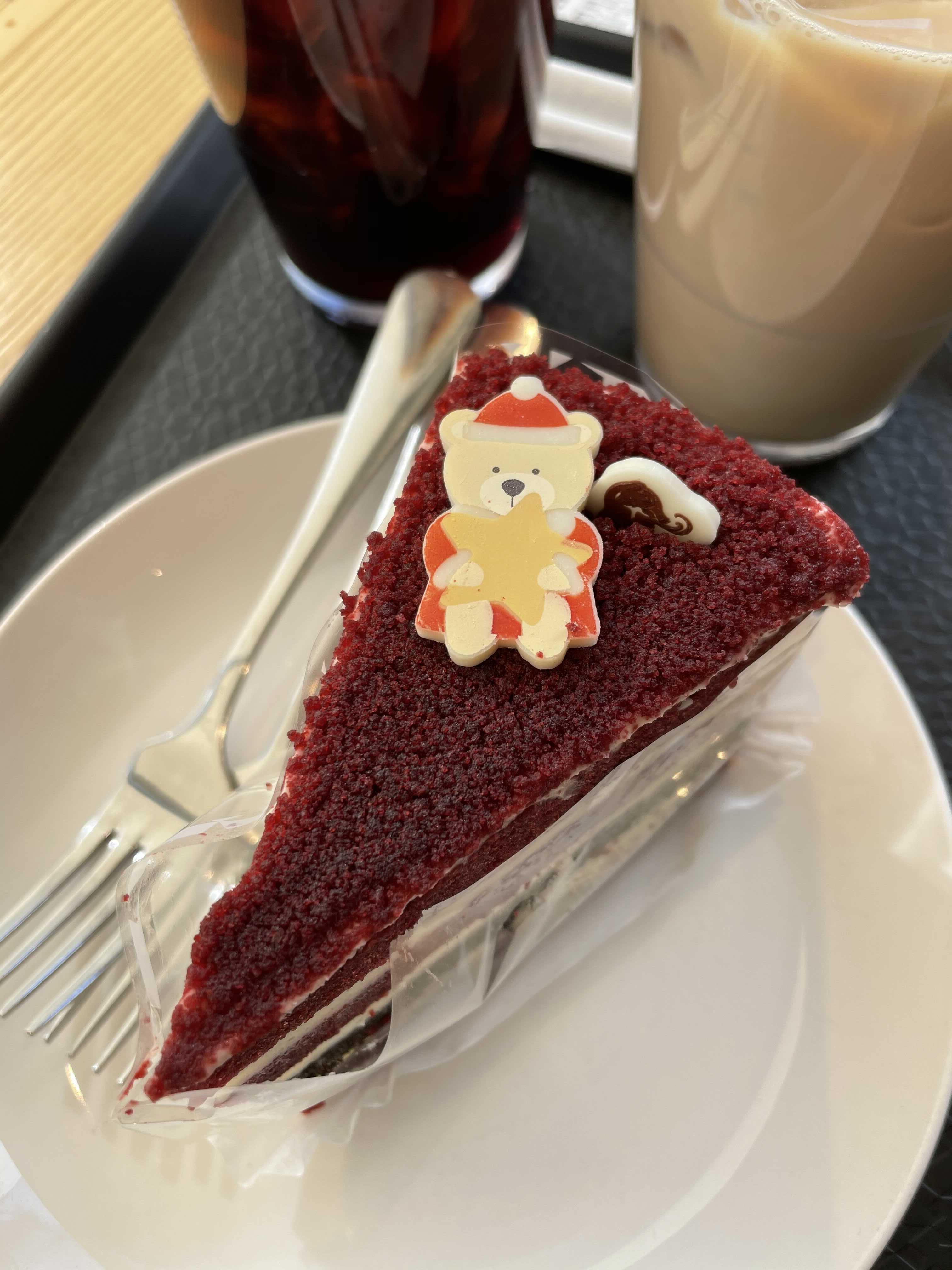 산타 벨벳 케이크는 꼭꼭 일반 라떼나 혹은 달지 않은 음료와 차 종류를 골라서 함께 먹어보기를 바란다.