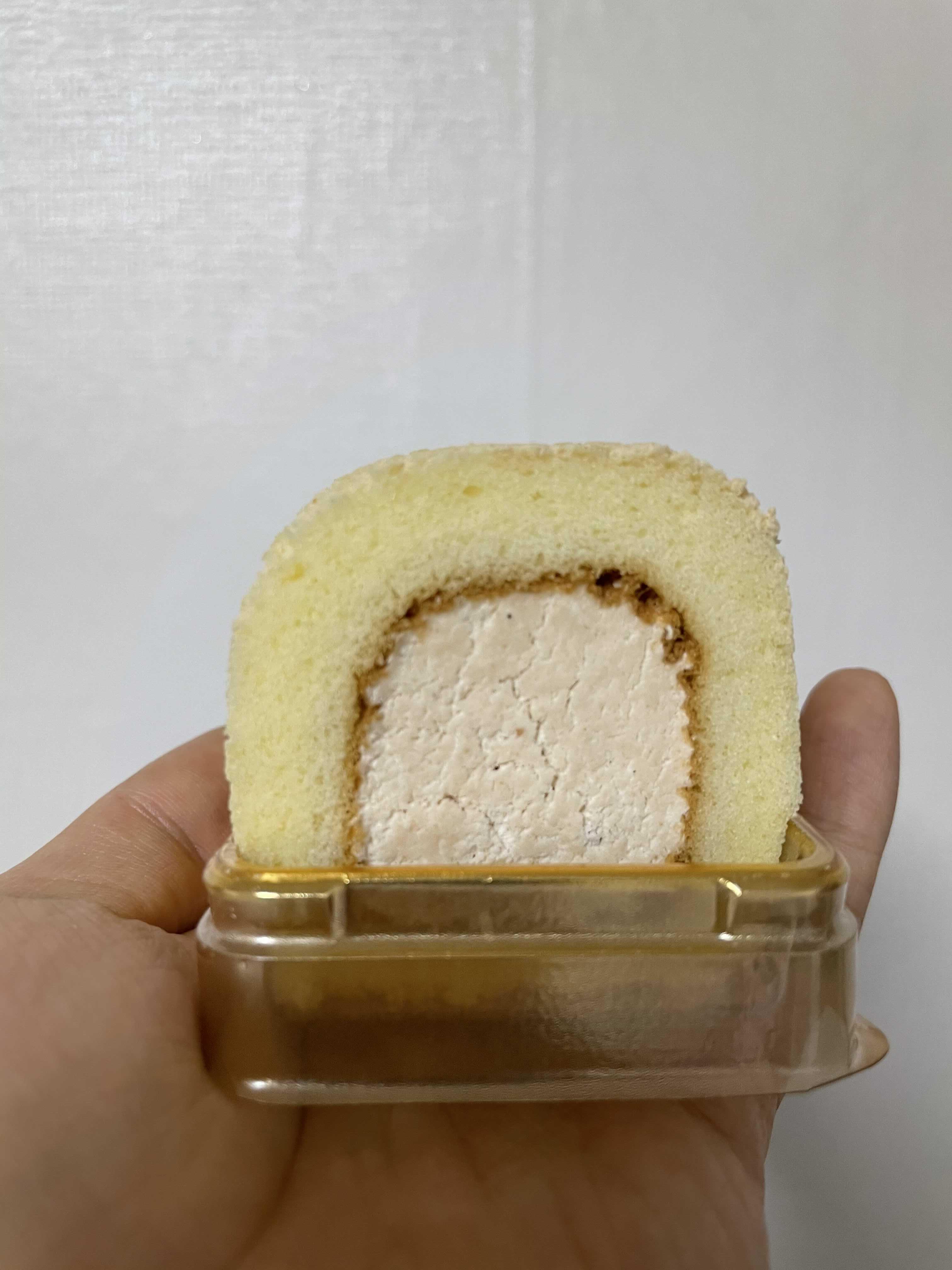 롤케익이니까 안에 들어있는 생크림도 먹어야하는데, 생크림에 콩가루 비슷한 걸 섞어놓은 듯한 색이었다.