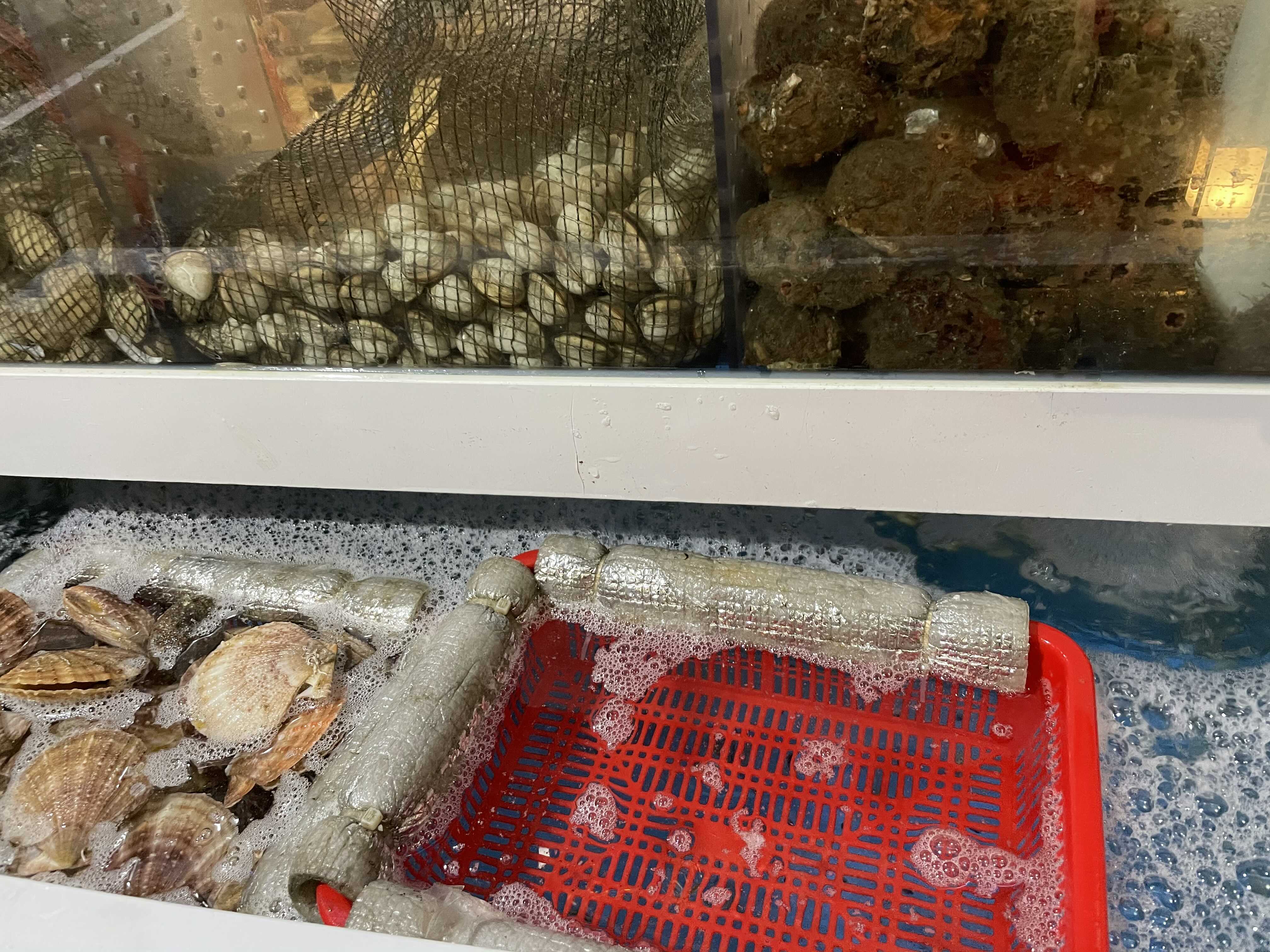 가게 앞 수조(?)에는 온갖 해산물들이 들어있는데, 이 해산물들이 산지 직송 자연산 해산물이라니.