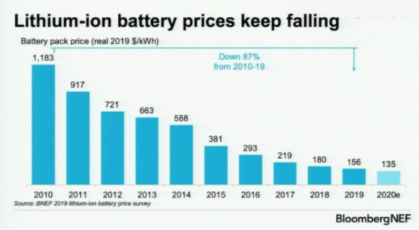 위의 사진을 보면 전기차 배터리셀 평균가가 어마어마하게 줄어든 것만 봐도 이제는 '대유행'이 시작될 것이라는 것을 예측해 볼 수 있다.