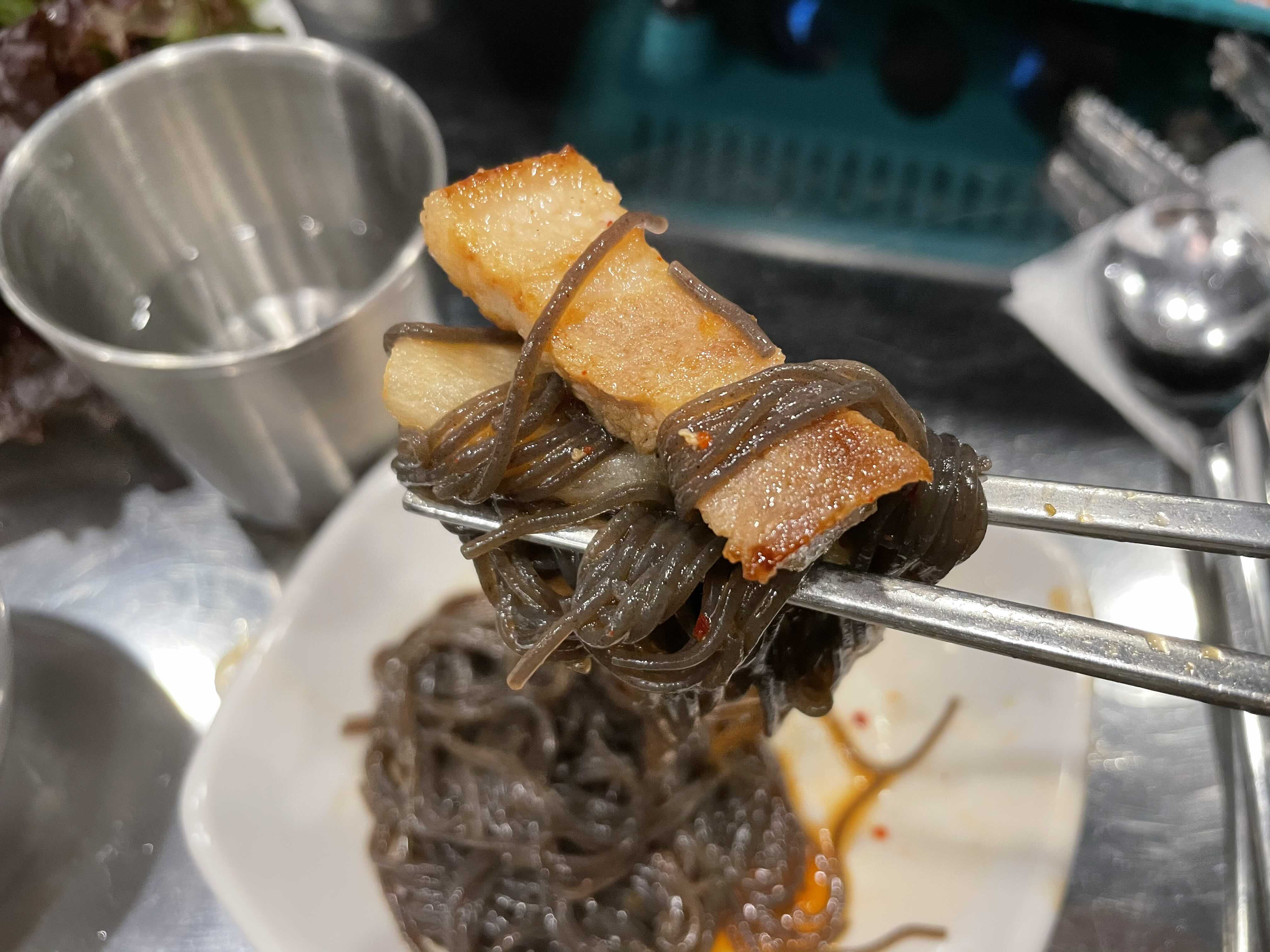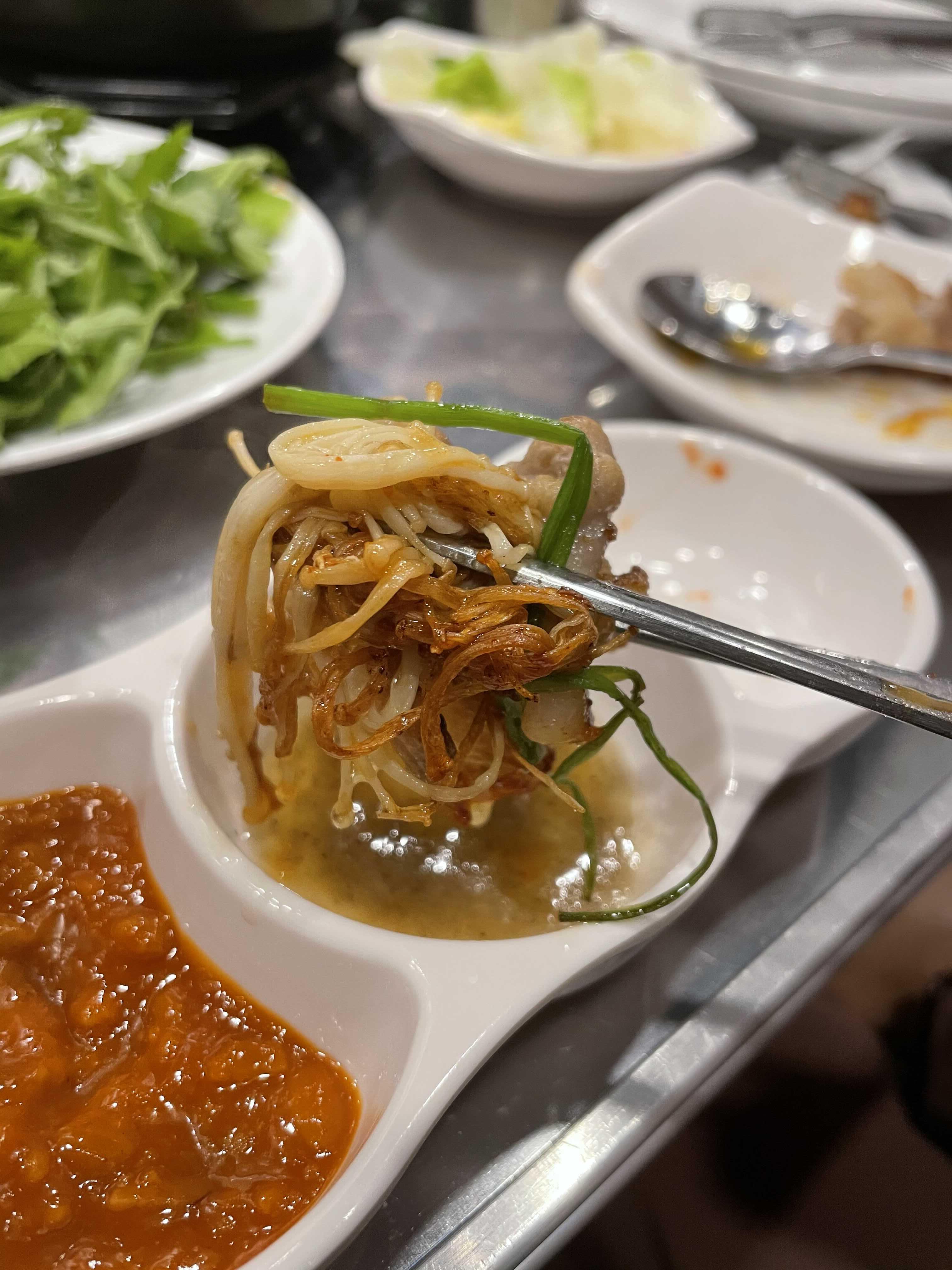 기름장과 고기기름이 느끼할 것 같지만 고소한 맛이 두배가 되는 마법을 느낄 수 있다.