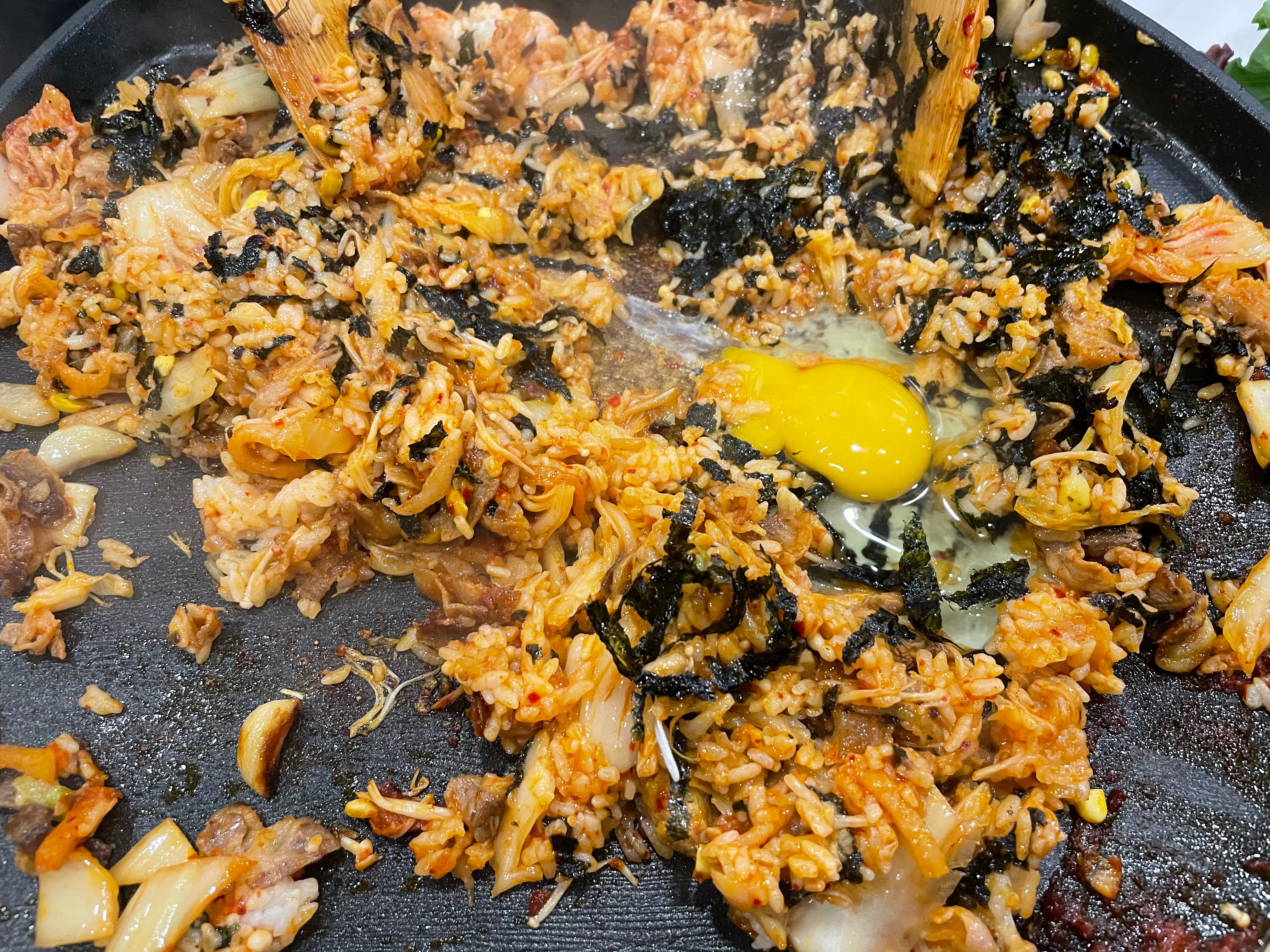 김가루와 마지막으로 계란을 깨서 넣어주면 볶음밥의 끝판왕인 최대패 표 <김치대패삼겹볶음밥>이 완성되는 것이다.